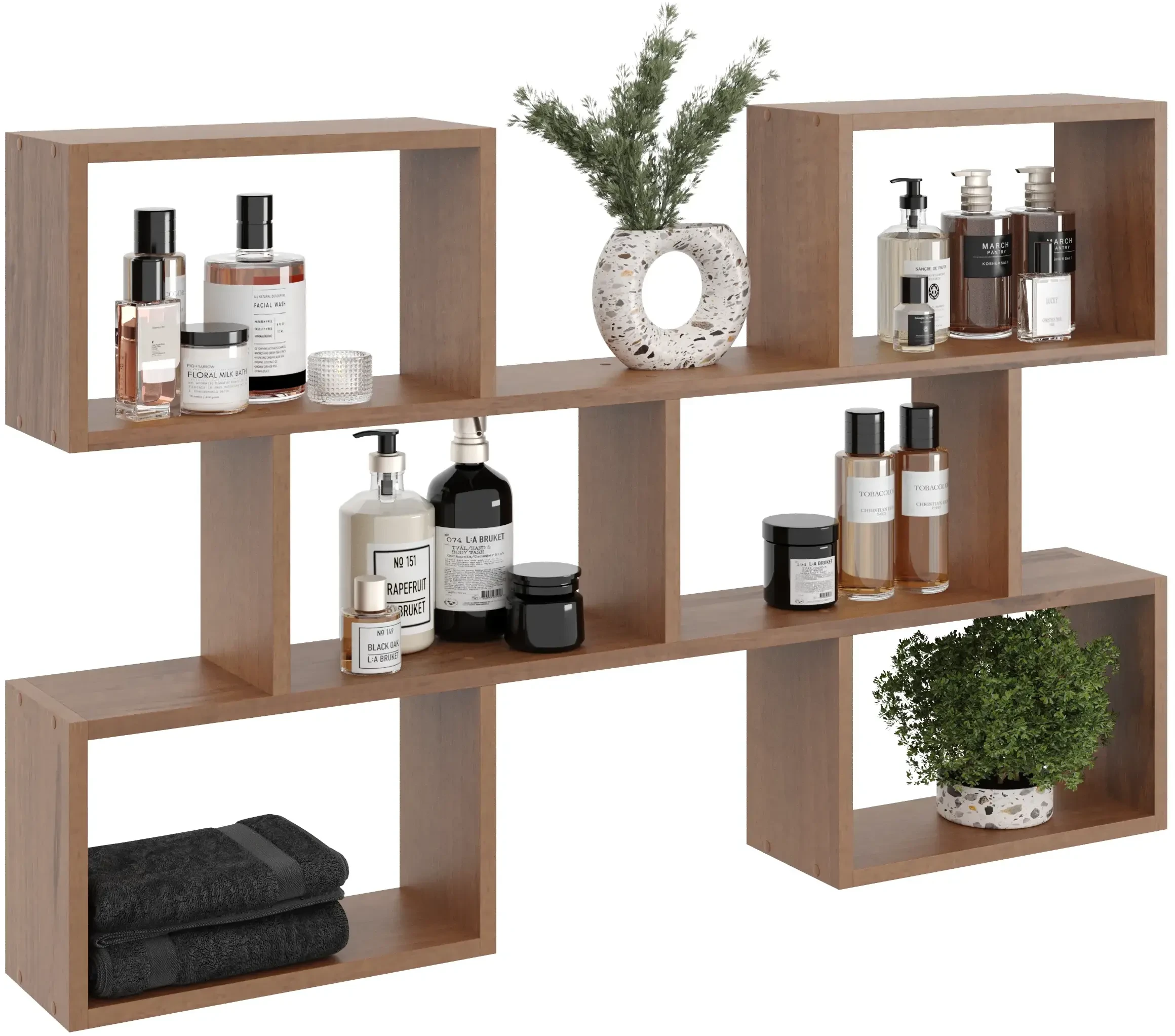 Półka wisząca Rita to propozycja symetrycznego regału wiszącego/półki na książki, rośliny lub dekoracje. Mebel wykonany został z solidnej płyty laminowanej o grubości 18 mm. Ciekawa i oryginalna forma wpasuje się do każdego wnętrza a duża liczba naturalnych kolorów pozwoli dopasować mebel do aranżacji pomieszczenia.