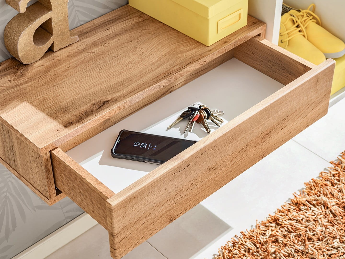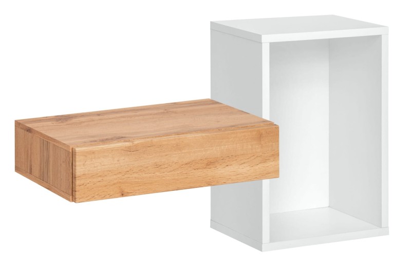 - Nowoczesny design – szuflada i półka Easy II to minimalistyczne, ale zarazem eleganckie rozwiązanie, które dzięki połączeniu naturalnego wybarwienia drewna (Wotan) z białym korpusem, wpisuje się w nowoczesne trendy aranżacyjne.