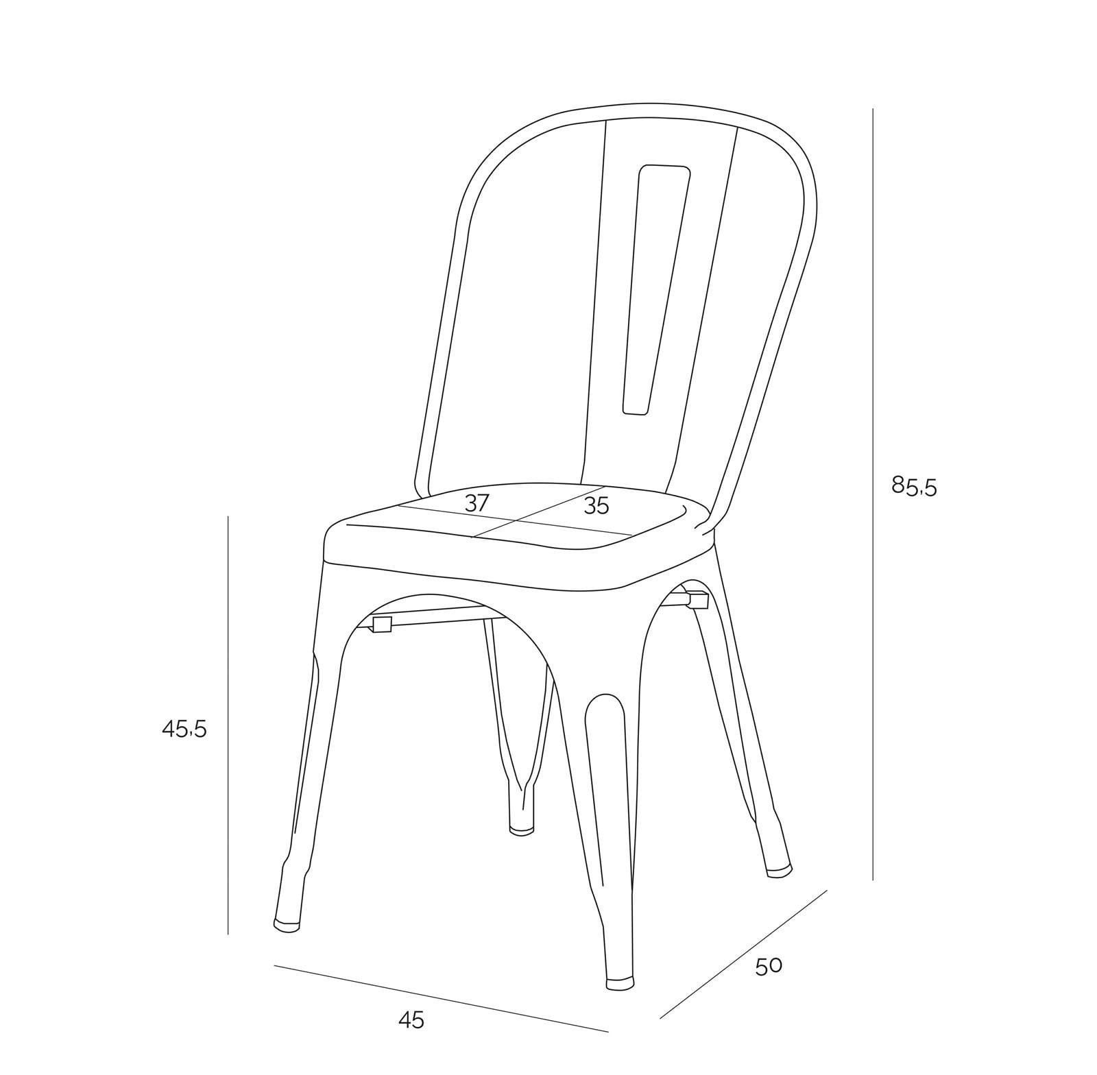 Industrialne przecierane krzesło Paris Antique wykonane zostało z metalu o matowym wykończeniu. Wygodne siedzisko jak i stabilna podstawa w tym samym kolorze posiadają przetarcia, które dodają dodatkowego charakteru całości mebla. Krzesło w stylu industrialnym sprawdzi się doskonale w surowych, loftowych wnętrzach, ale również eklektycznych. Maksymalne obciążenie krzesła wynosi 120 kg. Krzesło można sztaplować, nie wymaga montażu, nie nadaje się do użytku zewnętrznego, waży ok. 6kg.