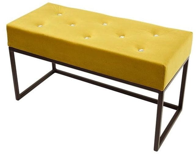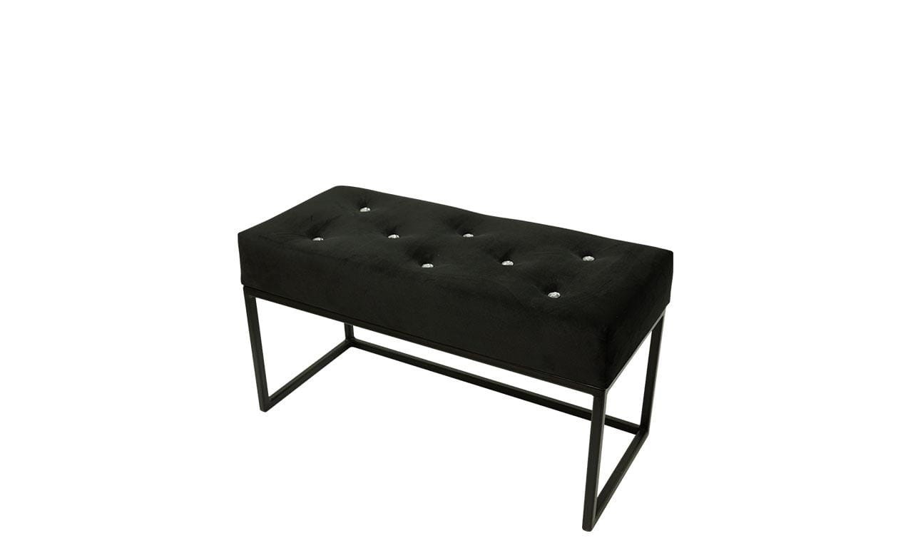 Queens to pufa o niewielkich rozmiarach w stylu glamour. Wykonana została z metalowych profili, spawanych i pomalowanych proszkowo w kolorze czarnego matu oraz wygodnego siedziska pikowanego szklanymi guzikami.