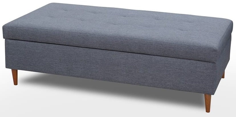 Pufa Areo to stylowa i komfortowa propozycja mebla do salonu utrzymanego w nowoczesnym, ponadczasowym stylu. Pufa została zaprojektowana w funkcjonalny i przemyślany sposób oraz wykonany wyłącznie z najlepszych materiałów. Prosta bryła i minimalistyczny design pozwala na idealne dopasowanie pufy do każdego pomieszczenia. Prostokątny kształt, pikowania oraz subtelne, drewniane nóżki w połączeniu z elegancką tkaniną idealnie dopełniają kompozycję tego mebla. Pufa może służyć jako siedzisko lub podnóżek, który z powodzeniem przyczyni się do poprawy komfortu podczas siedzenia na sofie, narożniku czy fotelu. Dodatkowo mebel posiada otwierane wieko i skrzynię, dzięki czemu może służyć nie tylko do siedzenia, ale również jako schowek do przechowywania koców, zabawek dla dzieci czy innych drobnych przedmiotów. Nowoczesna pufa Areo zaprojektowana i wykonana została w Polsce co jest gwarancją jakości - Wspieraj