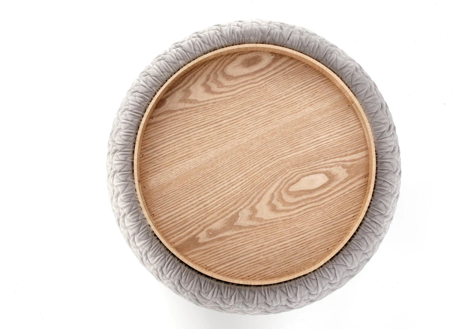 Pufa tapicerowana Bono okrągła ze schowkiem do salonu 54 cm jasny popiel