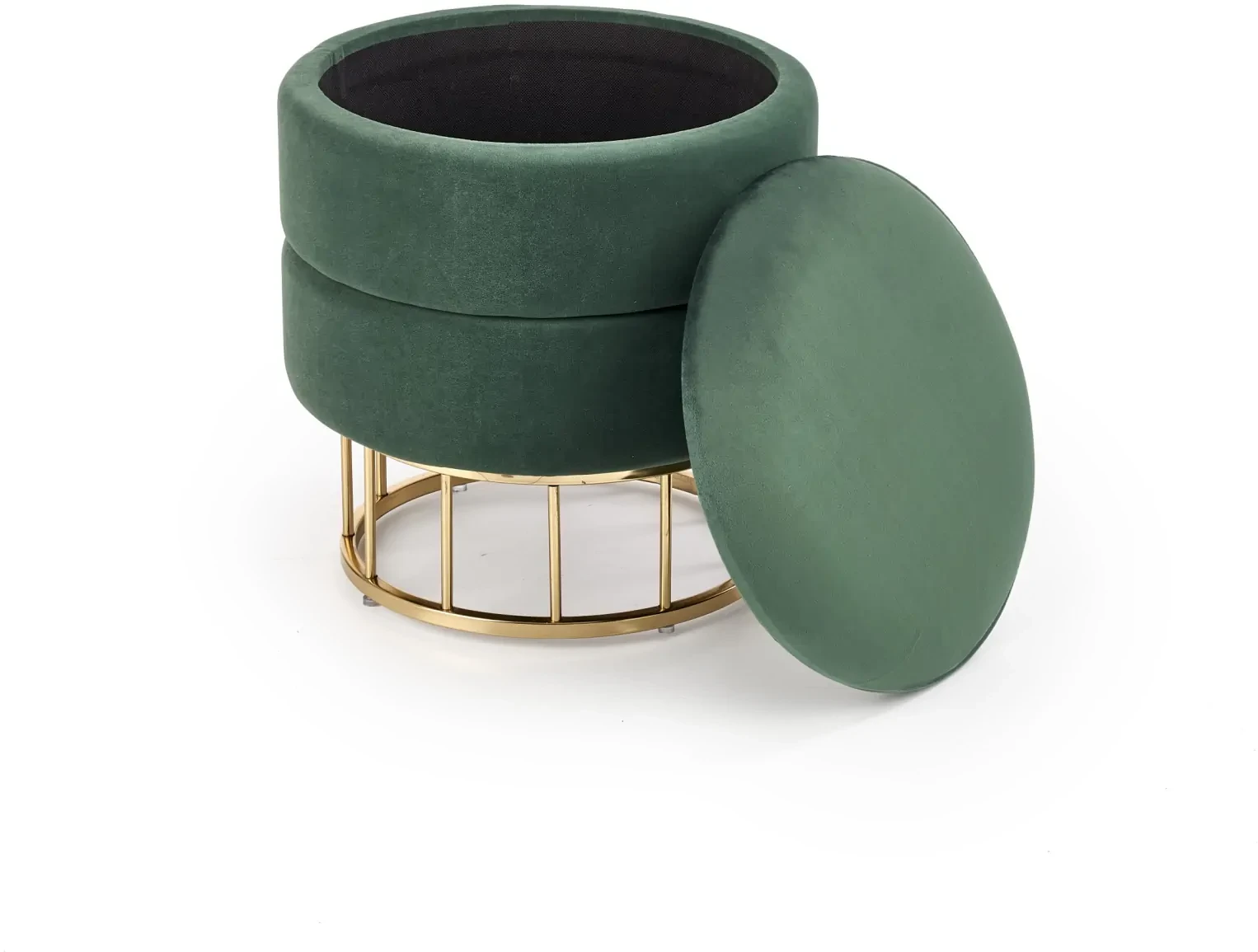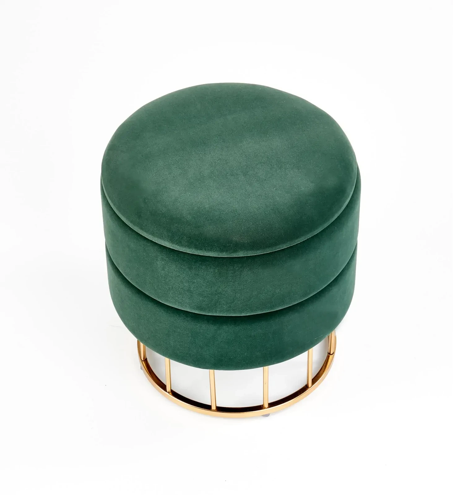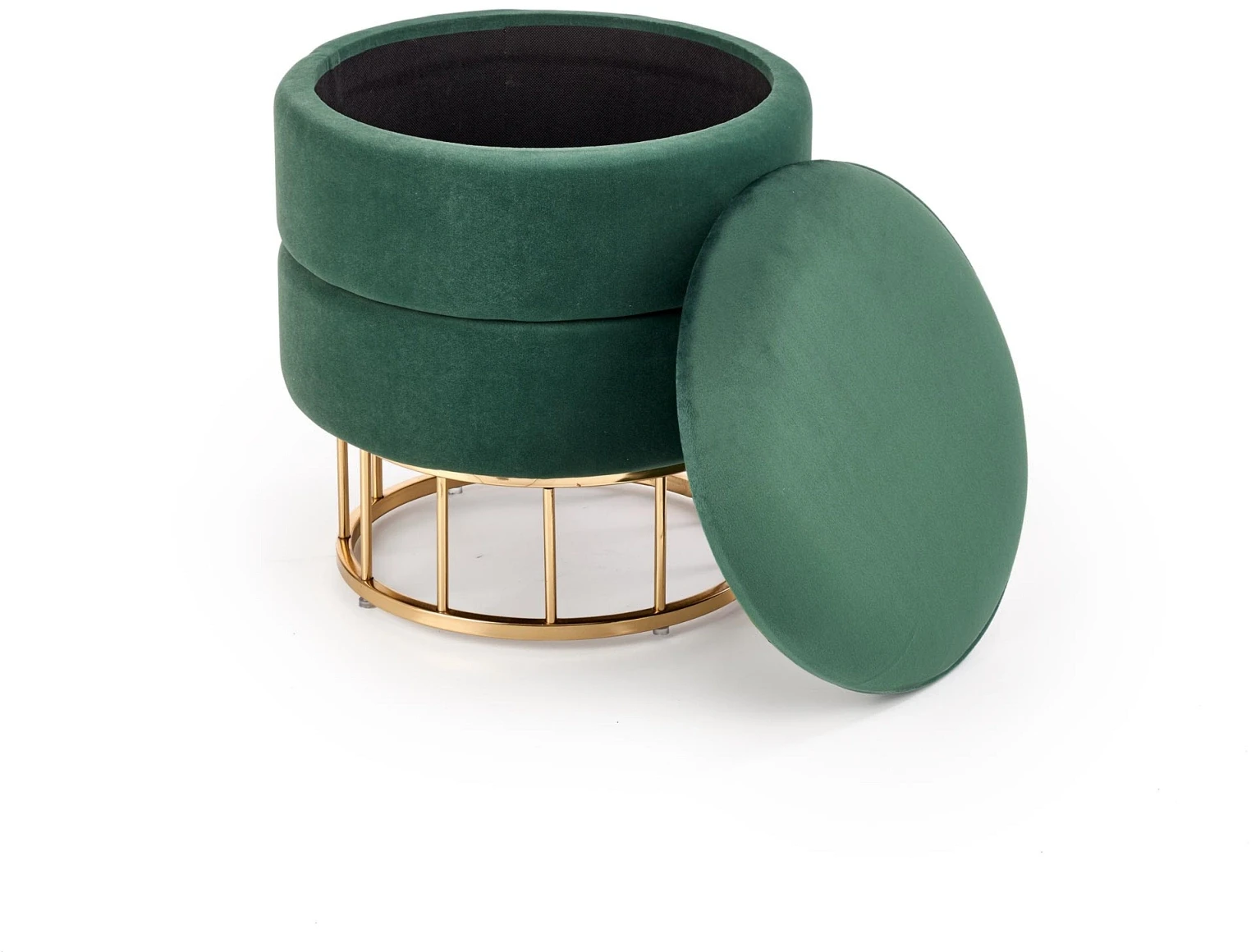 Pufa tapicerowana Minty ze schowkiem okrągła do przedpokoju ciemny zielony/złoty