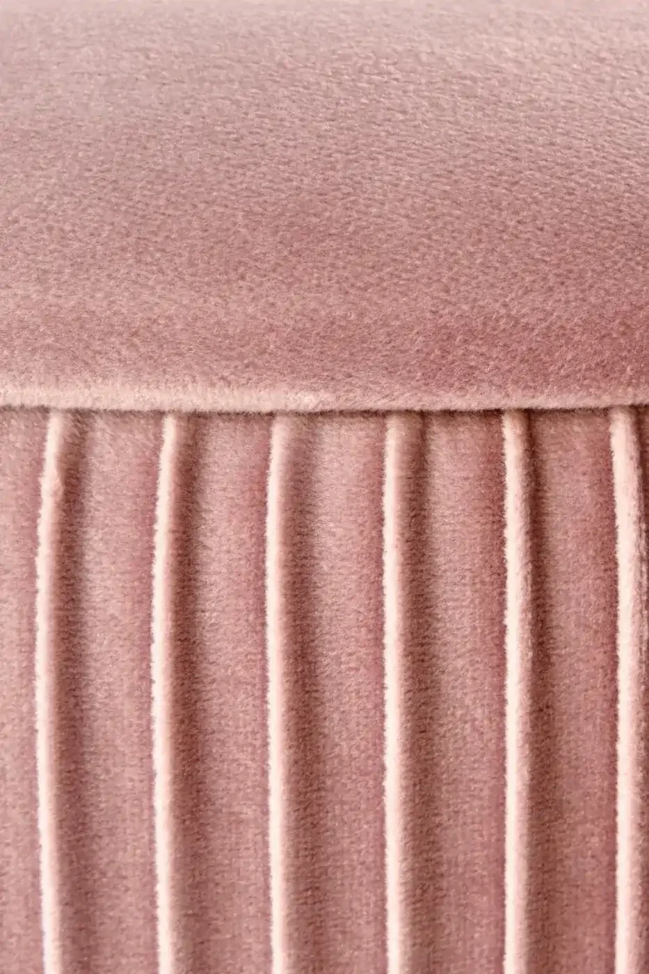 Pufa CRICKET w kolorze jasnego różu to wyjątkowy akcent, który wnosi do wnętrza nie tylko styl, ale też funkcjonalność. Jej welwetowa tkanina i pionowe przeszycia przyciągają wzrok, dodając przestrzeni elegancji w stylu glamour. Metalowy stelaż w srebrnym kolorze zapewnia nie tylko lekkość formy, ale również solidność wykonania, dzięki czemu pufa będzie służyła przez długie lata. To, co czyni ten model wyjątkowym, to praktyczny schowek ukryty pod siedziskiem – idealny na przechowywanie drobnych przedmiotów, które chcemy mieć zawsze pod ręką. Kompaktowy rozmiar sprawia, że świetnie sprawdzi się w salonie, sypialni, garderobie czy przedpokoju – wszędzie tam, gdzie liczy się zarówno estetyka, jak i wygoda. Jasnoróżowy kolor tkaniny doskonale wpisuje się w nowoczesne aranżacje i dodaje im przytulności oraz delikatnego uroku.
