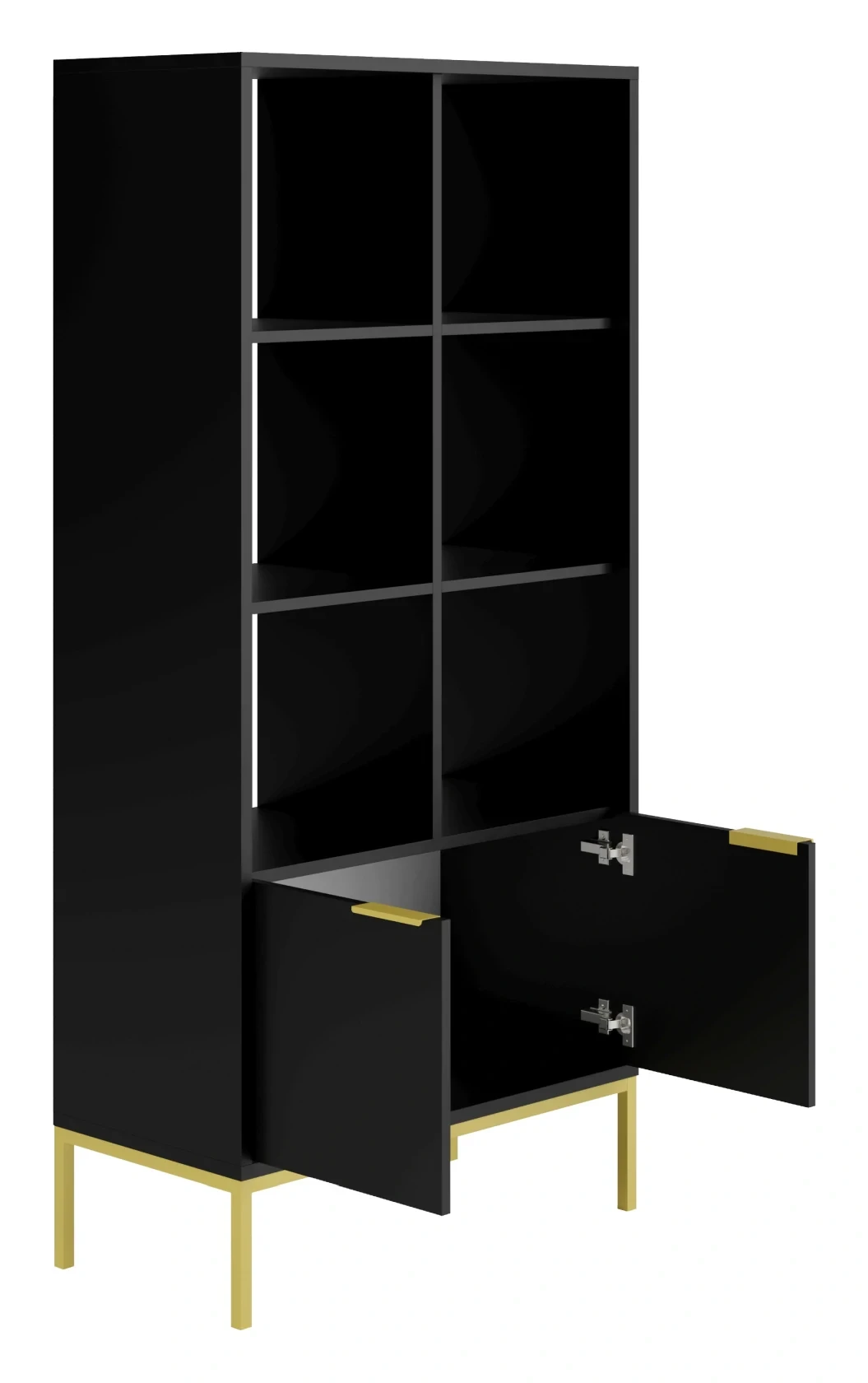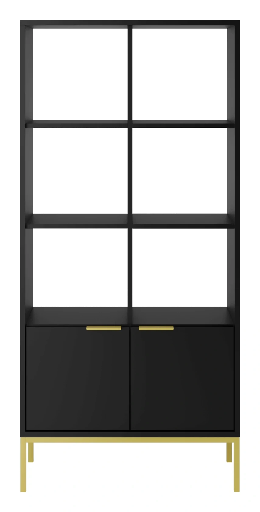 Regał Austin 80 cm z 2 zamykanymi szafkami do salonu czarny/złoty