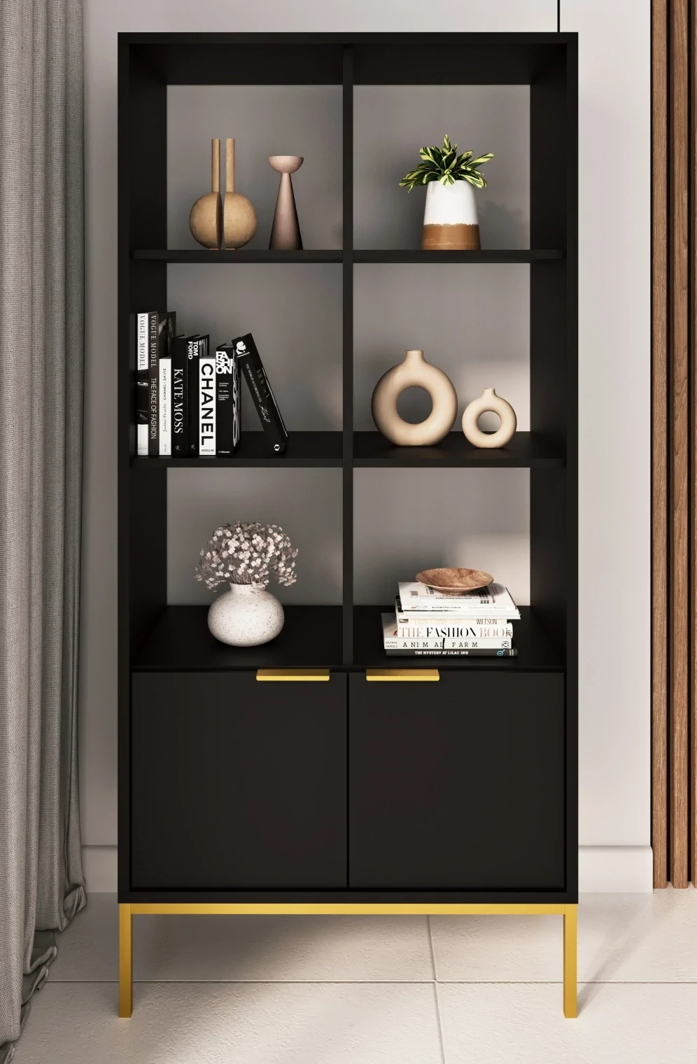 Regał Austin w kolorze czarnym z akcentami złota to synonim luksusu i nowoczesnego stylu, który doskonale uzupełni każde eleganckie wnętrze. Dzięki swojemu przemyślanemu projektowi, regał ten nie tylko zdobi przestrzeń, ale również spełnia wszystkie potrzeby związane z organizacją i przechowywaniem. Jest to wybór dla tych, którzy cenią sobie estetykę na równi z praktycznością.