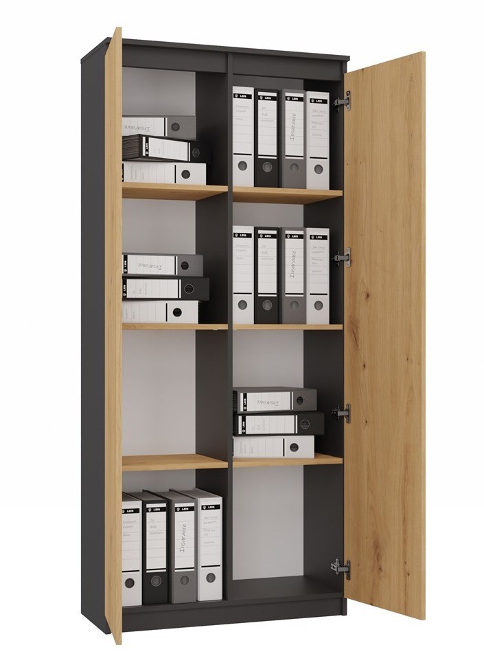Regał biurowy Hemn RS-80 zamykany nowoczesny 80 cm antracyt/dąb artisan