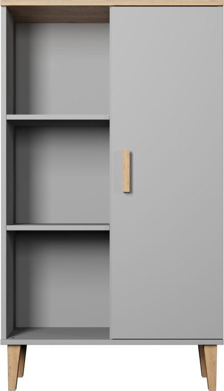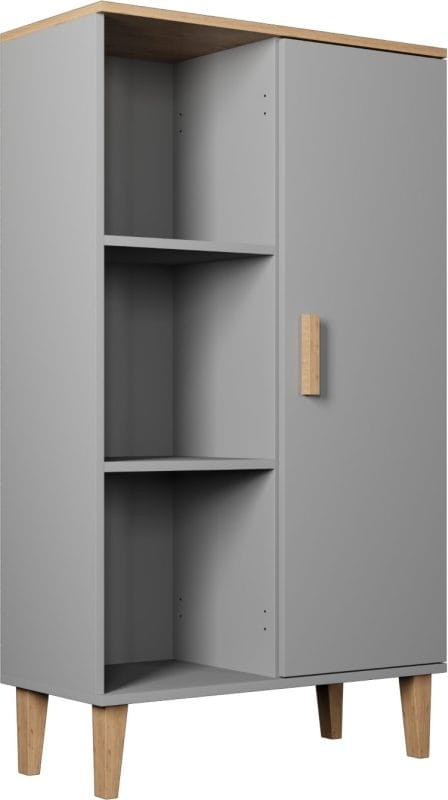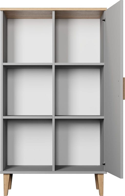 Regał Denver to nowoczesna propozycja praktycznego regału do salonu lub pokoju dziennego z serii mebli Denver. Regał posiada 3 otwarte półki oraz zamkniętą przestrzeń za drzwiczkami, dzięki czemu pomieści wszelkie ozdoby, książki czy inne przedmioty. Prezentowany regał został wykonany w stylu skandynawskim, co sprawia, że sprawdzi się idealnie we współczesnych salonach ze względu na jej nowoczesny design i minimalizm jednocześnie.