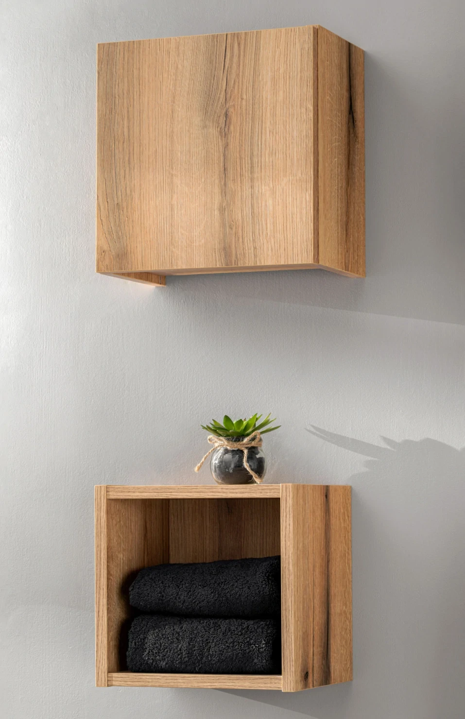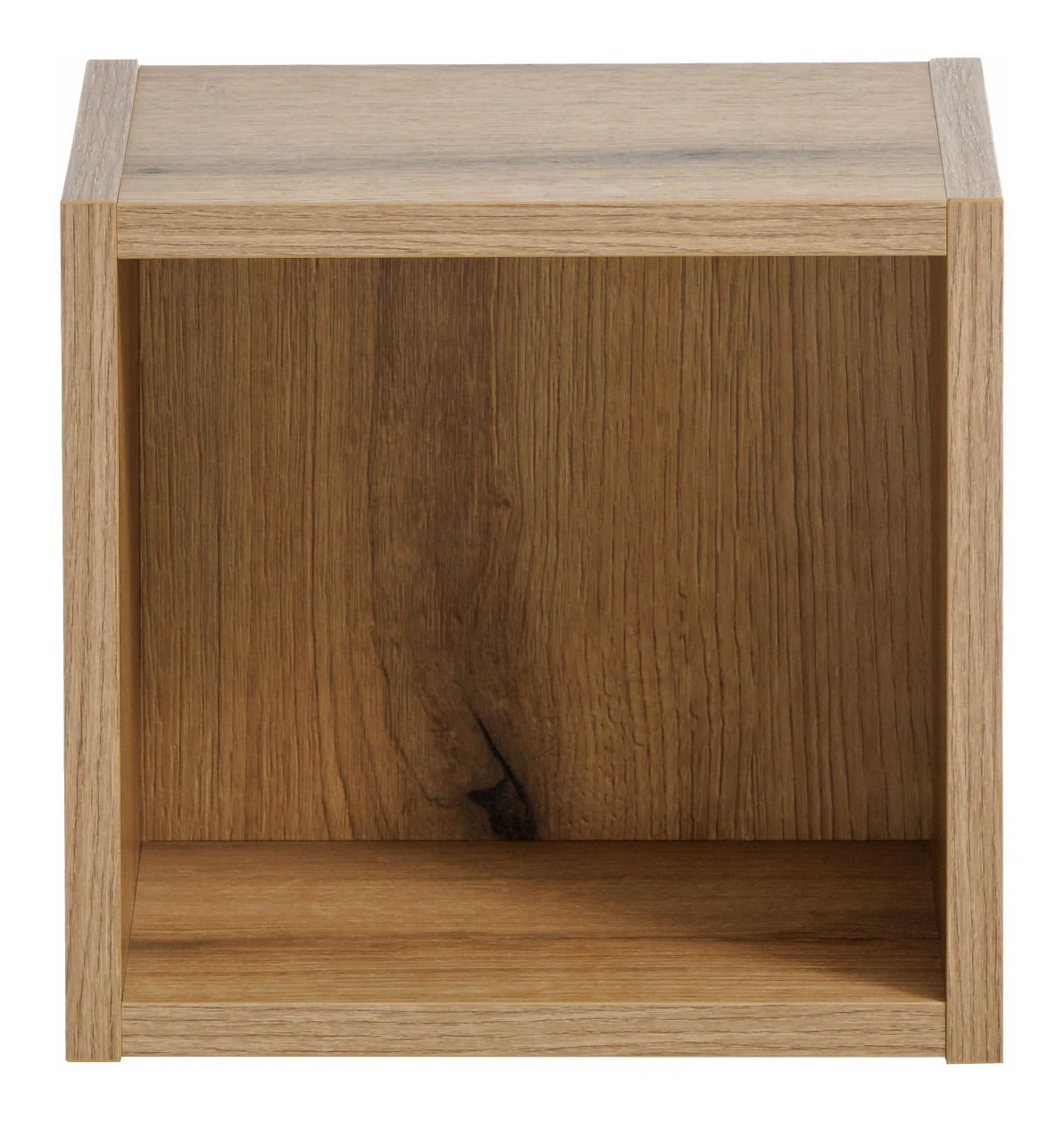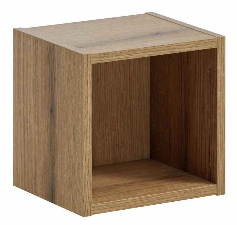 Regał łazienkowy NOVA OAK z kolekcji mebli łazienkowych łączy w sobie styl i funkcjonalność, idealnie odpowiadając na potrzeby nawet najbardziej wymagających użytkowników. Wykonanie z płyty laminowanej o grubości 16 mm gwarantuje trwałość i estetykę. Szafka jest typu wiszącego, co umożliwia łatwiejsze utrzymanie porządku i higieny na podłodze. Szafka wyposażona została w otwartą półkę umożliwiającą przechowywanie drobnych akcesoriów łazienkowych. Mniejsza głębokość mebli z tej serii sprawia, że idealnie nadają się do mniejszych łazienek, jednocześnie nie tracąc na funkcjonalności. Szafka górna jest częścią modułowej kolekcji NOVA OAK, co pozwala na elastyczne dopasowanie i integrację z innymi elementami serii, umożliwiając stworzenie spójnej i funkcjonalnej aranżacji przestrzeni.