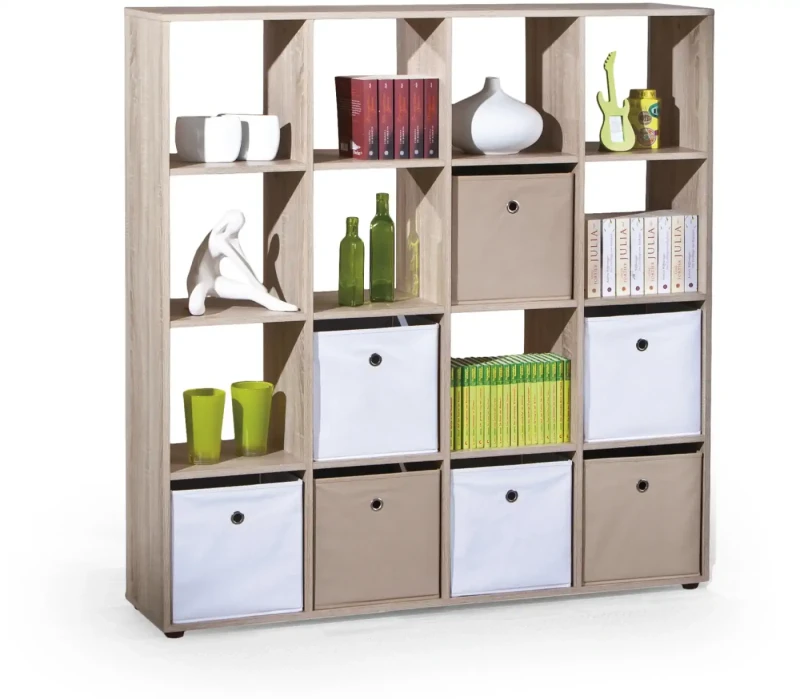 Regał otwarty Luini 139 cm z 16 przegrodami do salonu dąb sonoma