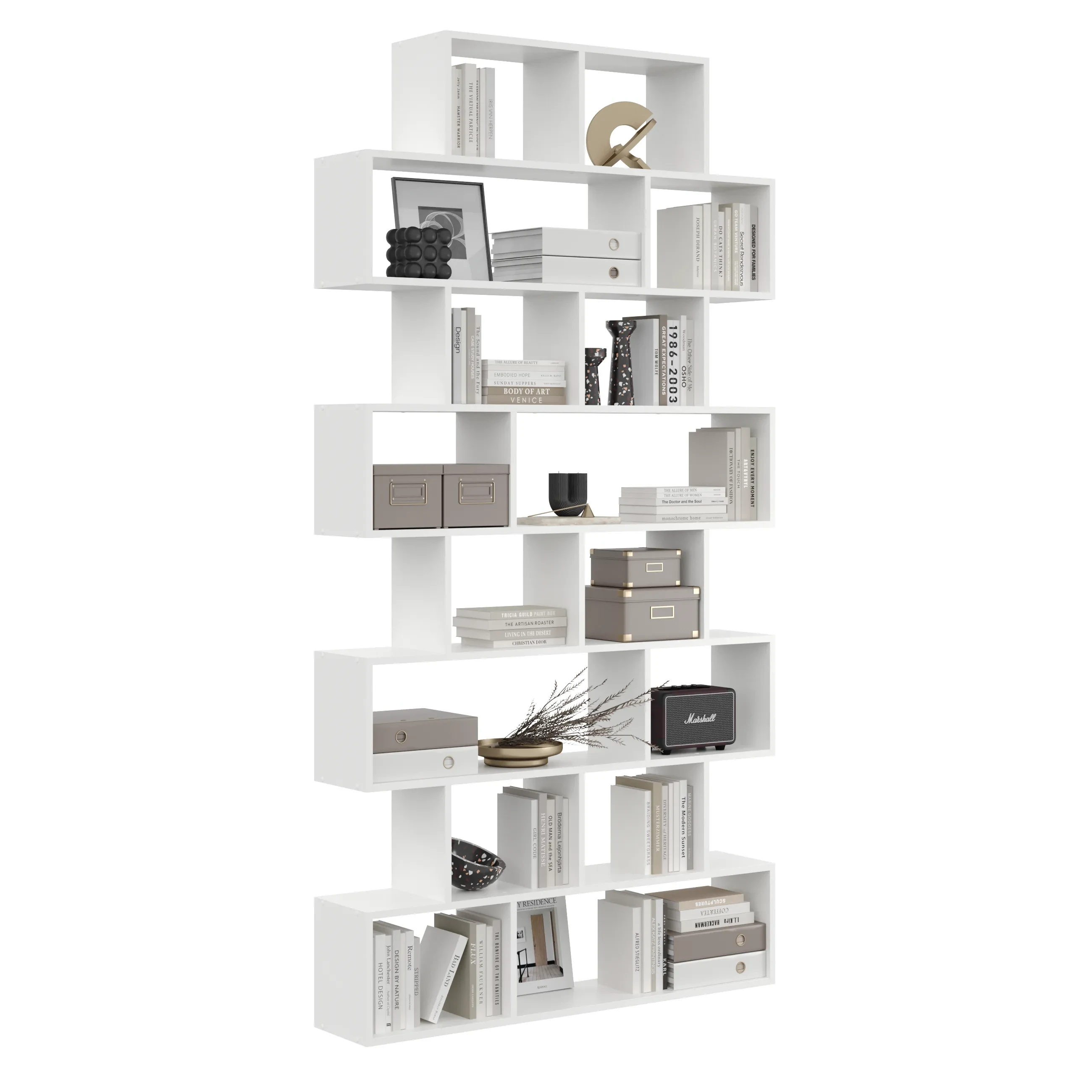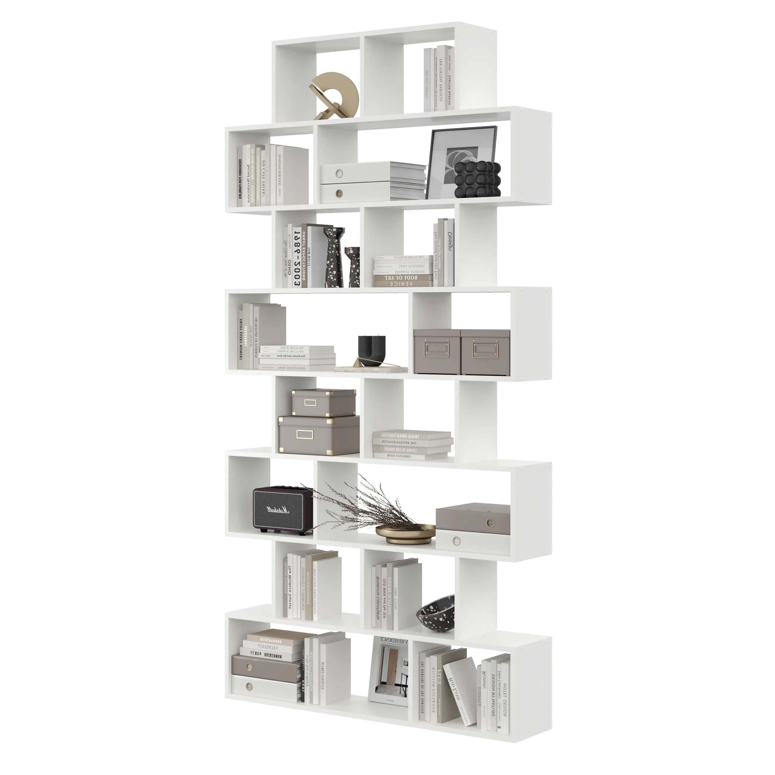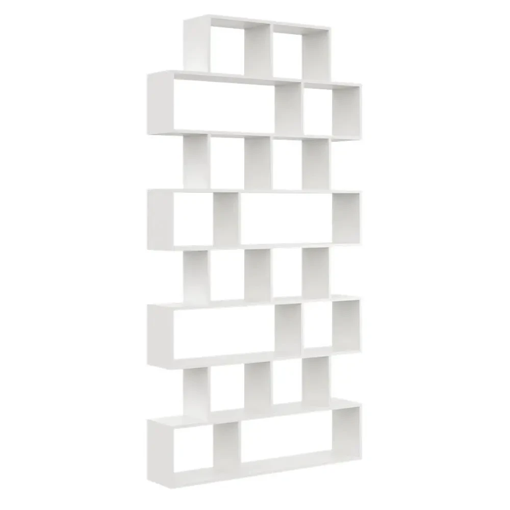 Regał Hygge to propozycja nowoczesnego regału stojącego ściennego na książki, rośliny lub dekoracje. Posiada wiele półek, które można dowolnie aranżować. Sprawdzi się się nie tylko do użytku domowego, ale również do biura. Mebel wykonany został z solidnej płyty laminowanej o grubości 18 mm. Prosta i oryginalna forma wpasuje się do każdego wnętrza.