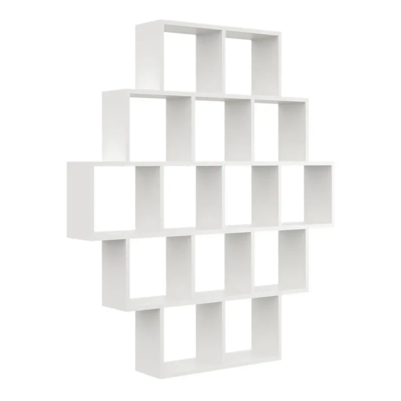 Regał wiszący Tomo to propozycja nowoczesnego i funkcjonalnego regału wiszącego na książki, rośliny lub dekoracje. Posiada wiele półek, które można dowolnie aranżować. Sprawdzi się się nie tylko do użytku domowego, ale również do biura. Mebel wykonany został z solidnej płyty laminowanej o grubości 18 mm. Ciekawa i oryginalna forma wpasuje się do każdego wnętrza.
