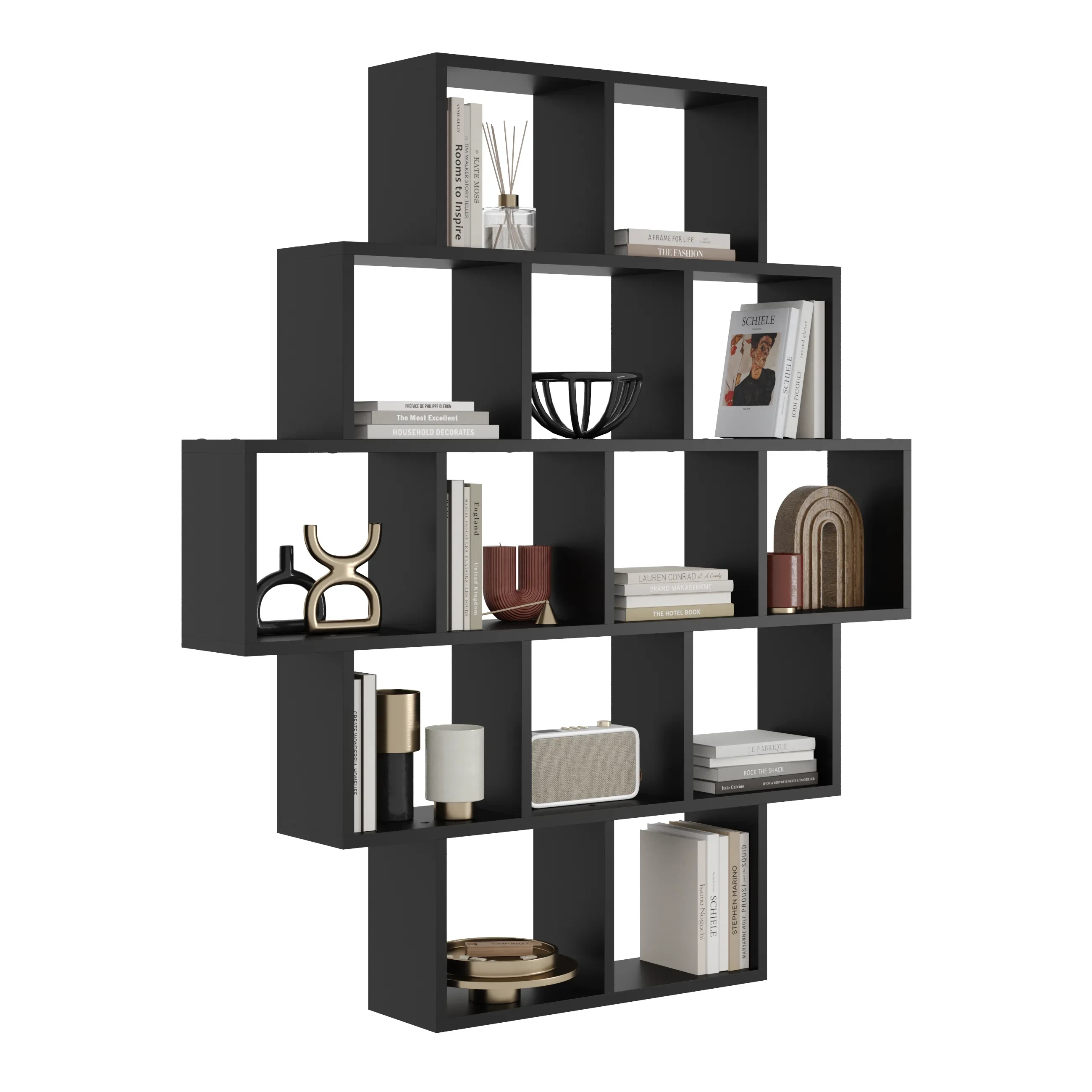Regał wiszący Tomo to propozycja nowoczesnego i funkcjonalnego regału wiszącego na książki, rośliny lub dekoracje. Posiada wiele półek, które można dowolnie aranżować. Sprawdzi się się nie tylko do użytku domowego, ale również do biura. Mebel wykonany został z solidnej płyty laminowanej o grubości 18 mm. Ciekawa i oryginalna forma wpasuje się do każdego wnętrza.