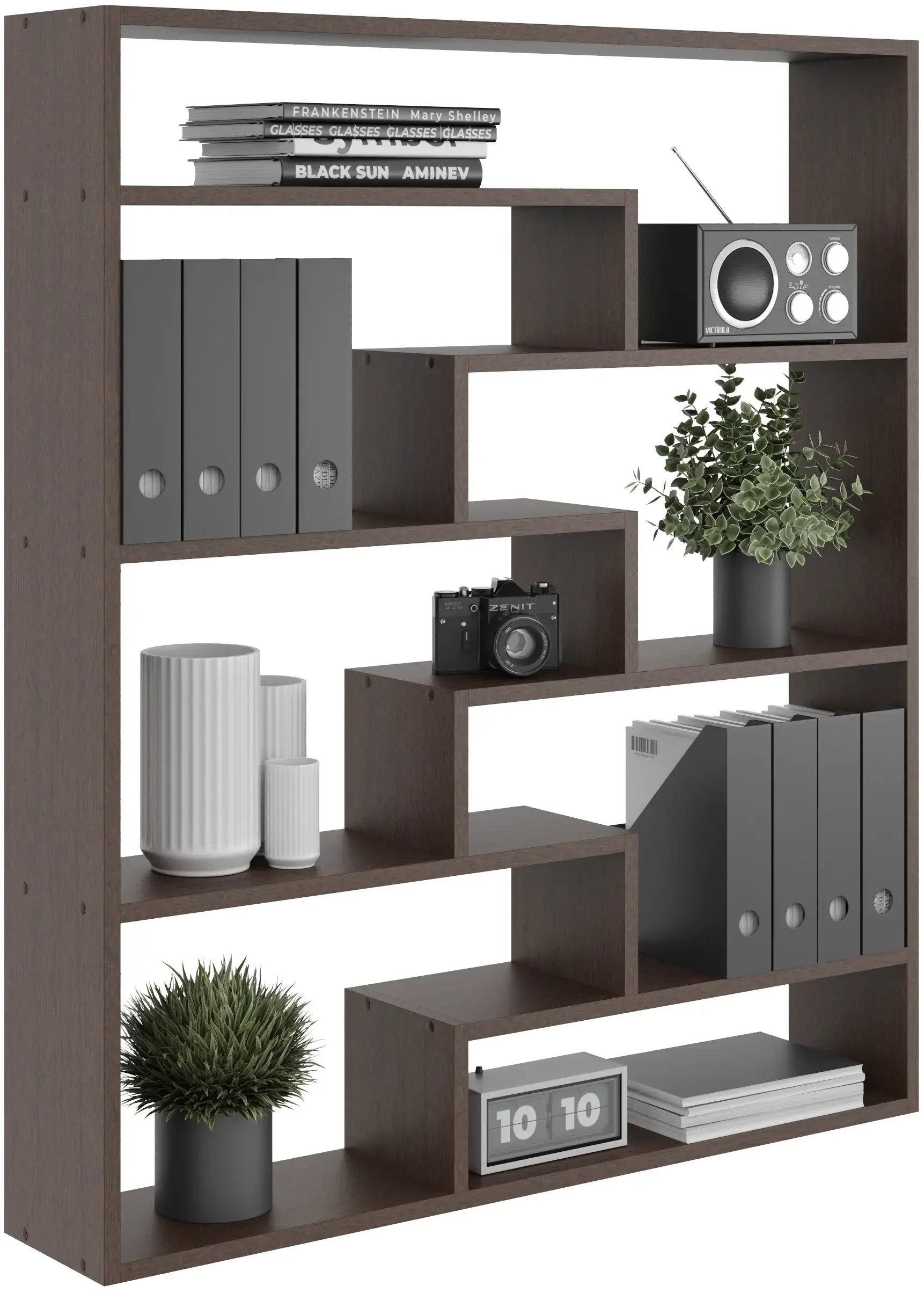 Regał Toreto to propozycja pojemnego regału wiszącego/półek na książki, rośliny lub dekoracje. Sprawdzi się nie tylko w roli domowej biblioteczki, ale również jako mebel biurowy. Regał wykonany został z solidnej płyty laminowanej o grubości 18 mm. Ciekawa i oryginalna forma wpasuje się do każdego wnętrza oraz pozwoli na praktyczne wykorzystanie wolnej przestrzeni.