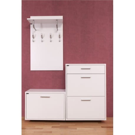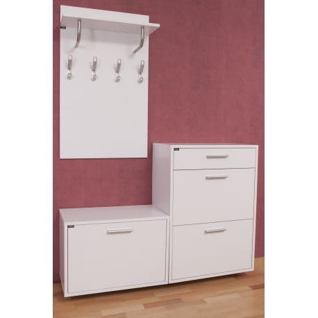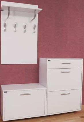 - funkcjonalne meble z szafką na buty, wieszakiem i siedziskiem gwarantują praktyczne urządzenie przedpokoju