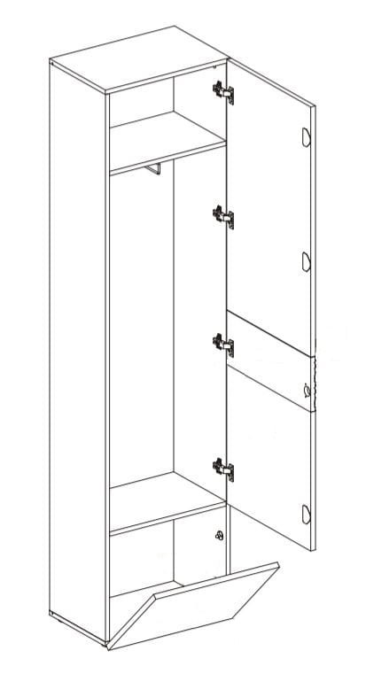 - 1 x drzwiczki - za nimi półka i prostopadły drążek wieszakowy