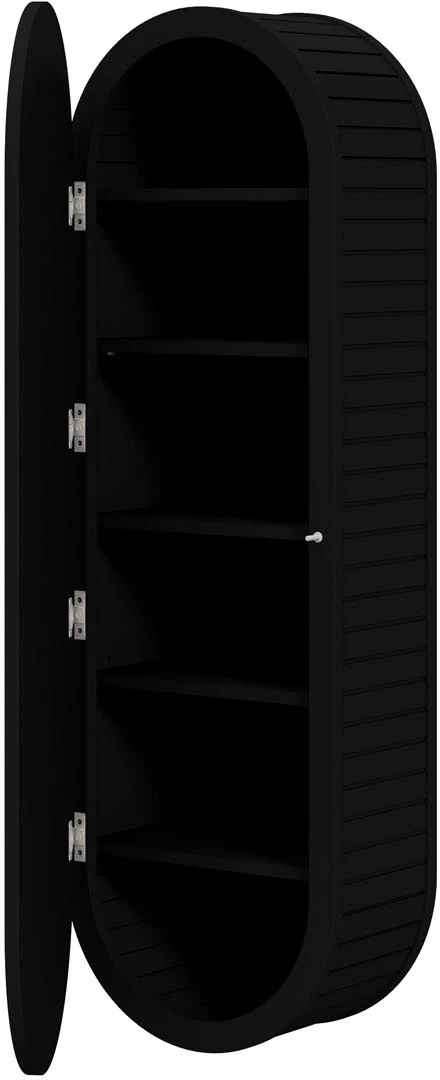 Czarny słupek VENEZIA to propozycja dla osób ceniących wyraziste, a zarazem ponadczasowe elementy wyposażenia wnętrz. Jego smukła, zaoblona forma w połączeniu z głębokim matowym wykończeniem nadaje pomieszczeniom wyjątkowego charakteru i elegancji. Mebel doskonale odnajdzie się w przestrzeniach nowoczesnych, loftowych, a także minimalistycznych, podkreślając ich wyrafinowany styl.