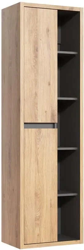 Słupek łazienkowy wysoki Devon to nowoczesny mebel do łazienki. Słupek jest bardzo pojemny, ma aż 9 półek, co daje aż 11 przestrzeni użytkowych. Dzięki temu mebel może pomieścić sporo kosmetyków lub innych akcesoriów łazienkowych. Kolekcja Devon to połączenie prostej i stonowanej formy z imitującym drewno dekorem dąb Shetland, pozwalające stworzyć harmonijne i wyjątkowe wnętrze. Całość dopełniają otwarte półki i wnętrza w kolorze grafit. Wszystkie drzwi oraz szuflady posiadają system cichego domyku.