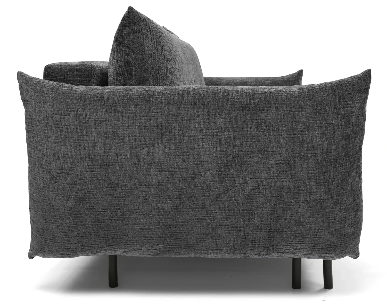 - Nowoczesny design – minimalistyczna forma z wysokimi metalowymi nóżkami (15 cm, w kolorze czarnym) oraz tapicerowane plecy czynią sofę idealnym elementem wyposażenia otwartych przestrzeni i nowoczesnych wnętrz.