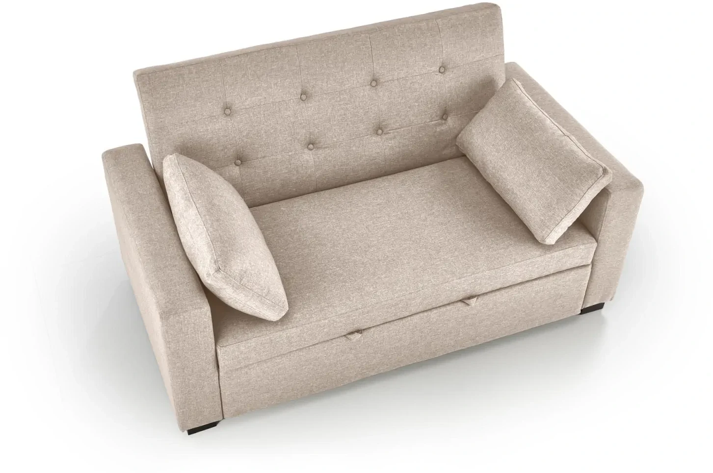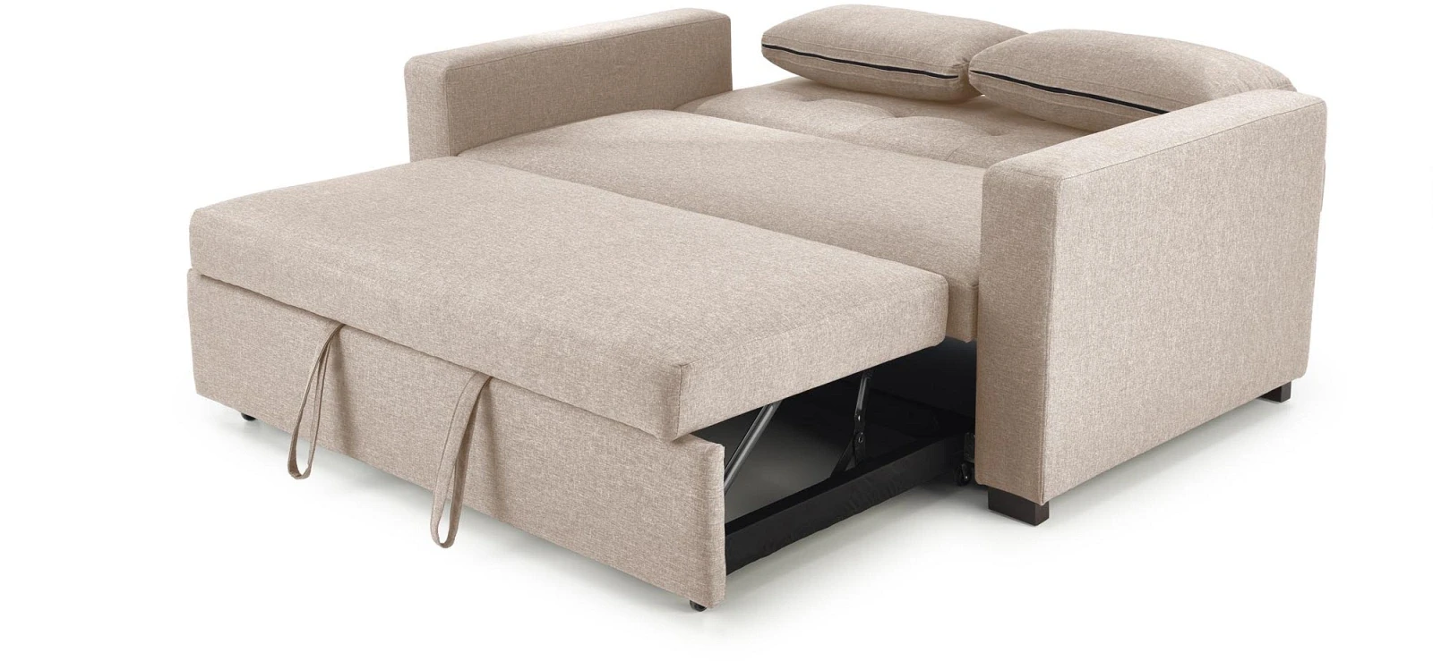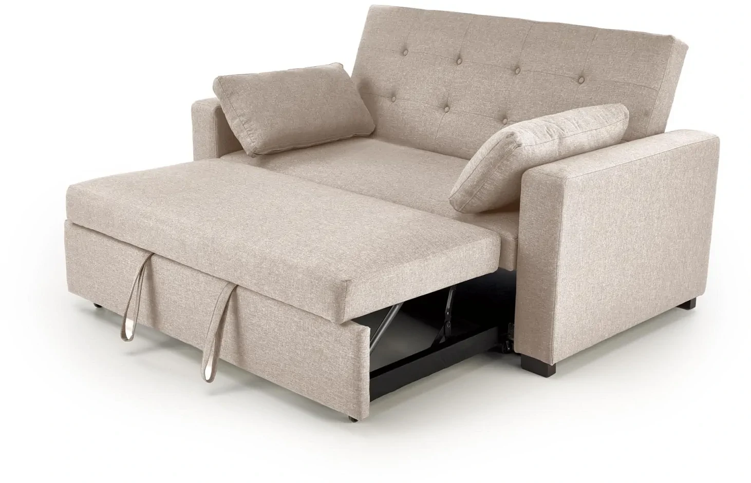 Sofa rozkładana Paulinio tapicerowana 2-osobowa z poduszkami do salonu beżowy