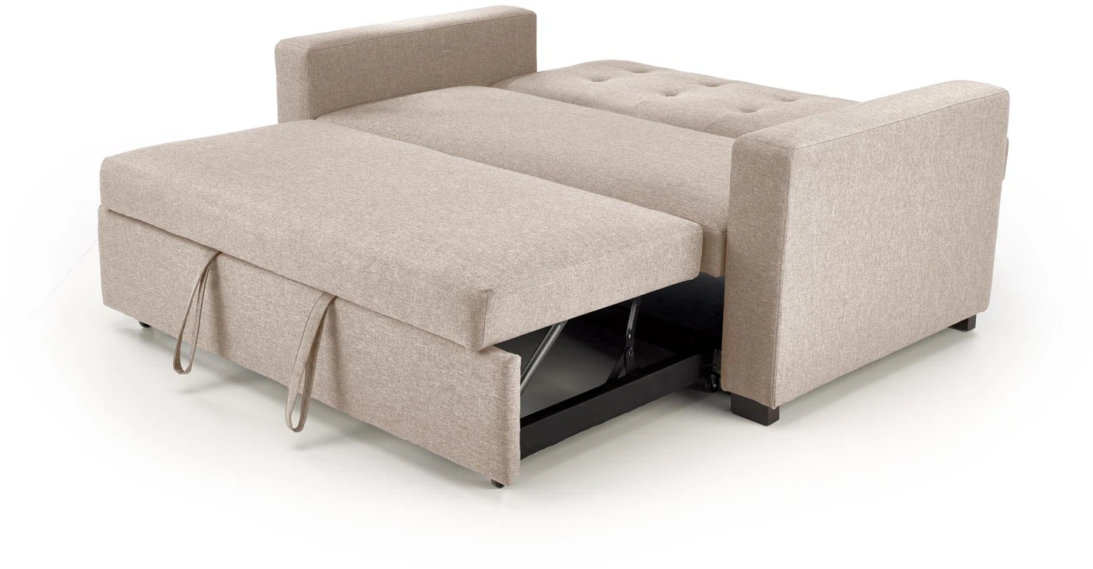 Sofa PAULINIO to doskonała propozycja dla osób poszukujących mebla, który łączy w sobie elegancję i praktyczne rozwiązania. Jej klasyczna forma z prostymi bokami i dekoracyjnym pikowaniem na oparciu idealnie wpisuje się zarówno w nowoczesne, jak i bardziej stonowane aranżacje wnętrz. Neutralny beżowy kolor sprawia, że sofa będzie świetnie komponować się z różnorodnymi dodatkami, tworząc przytulną przestrzeń do relaksu. Dzięki funkcji rozkładania z łatwością przekształcisz ją w wygodne miejsce do spania – to świetna opcja do salonu, pokoju młodzieżowego lub gościnnego. Solidna konstrukcja i zastosowanie trwałych materiałów zapewniają wygodę użytkowania i długą żywotność mebla. PAULINIO to sofa, która doskonale łączy estetykę z codziennym komfortem.