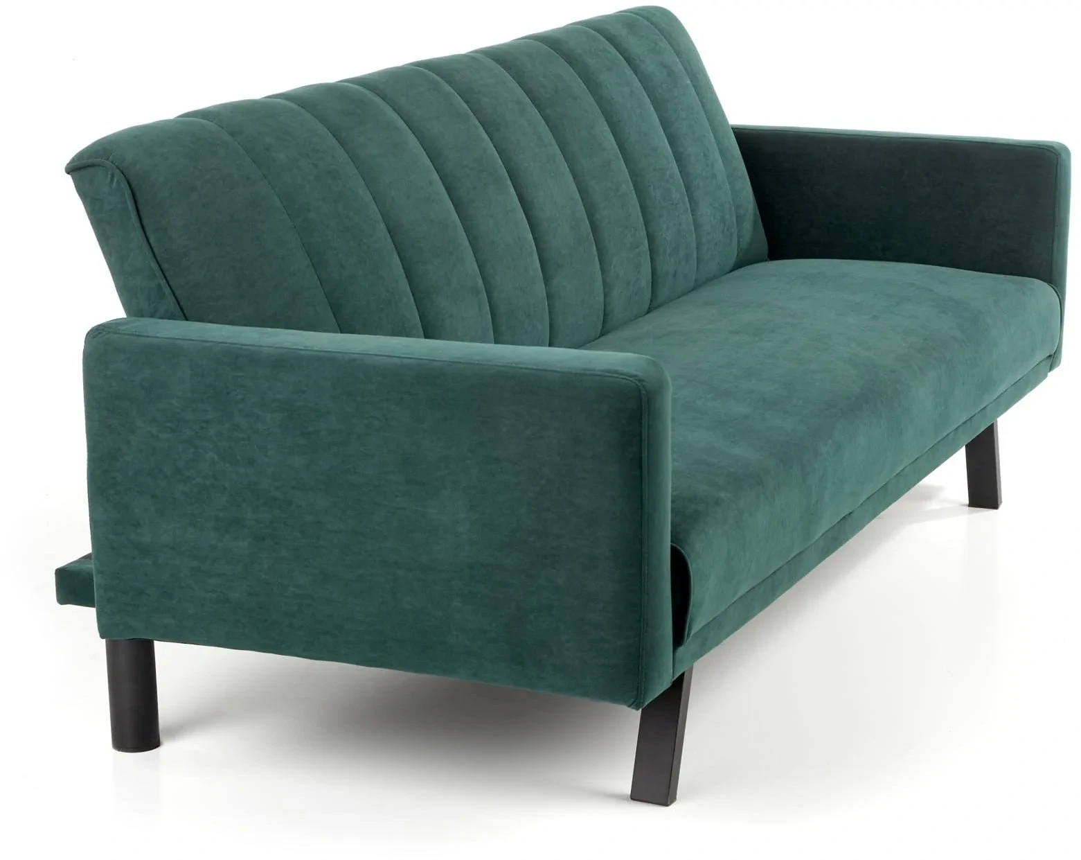 Sofa ARMANDO to praktyczny i stylowy mebel, który łączy wygodę codziennego użytkowania z funkcjonalnością rozkładania. Jej nowoczesna forma, podkreślona elegancką tkaniną velvet w ciemnozielonym odcieniu oraz czarnymi metalowymi nogami, sprawia, że świetnie prezentuje się zarówno w salonie, pokoju młodzieżowym, jak i w przestrzeniach gościnnych.