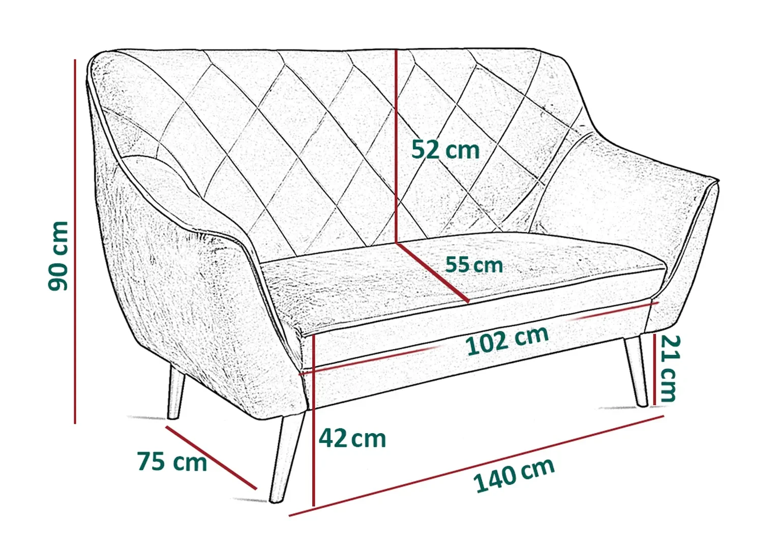 - sofa dwuosobowa - pozwala komfortowo umieścić 2 osoby umożliwiając tak np oglądanie telewizji jak rozmowy przy kawie