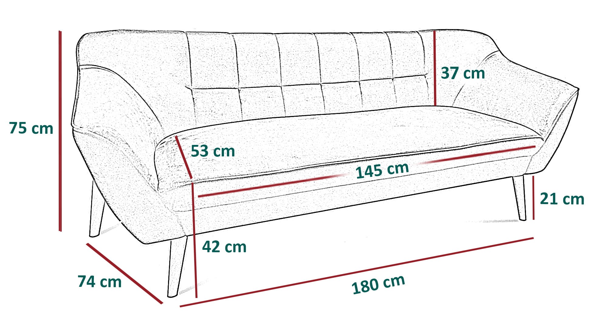 - wysokość sofy: 75 cm