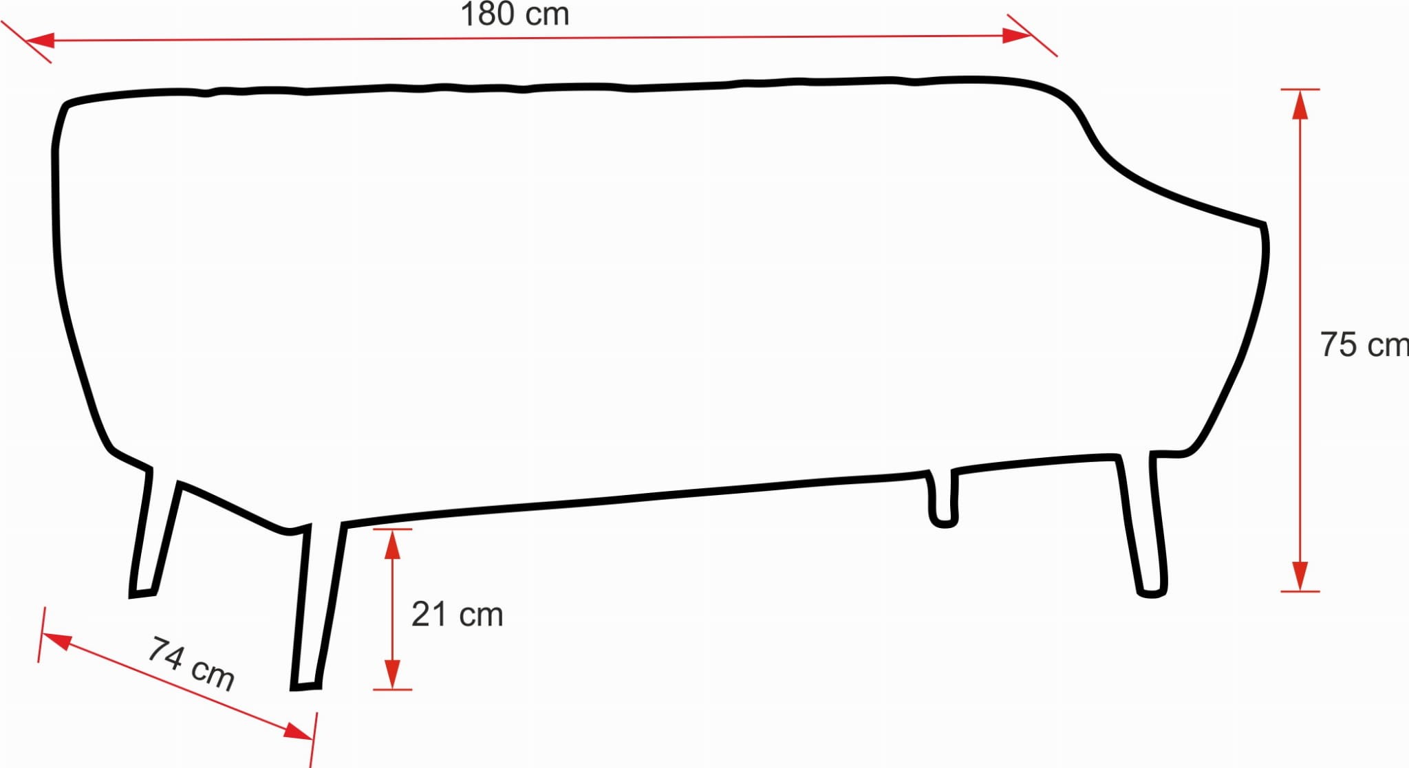 - głębokość sofy: 74 cm