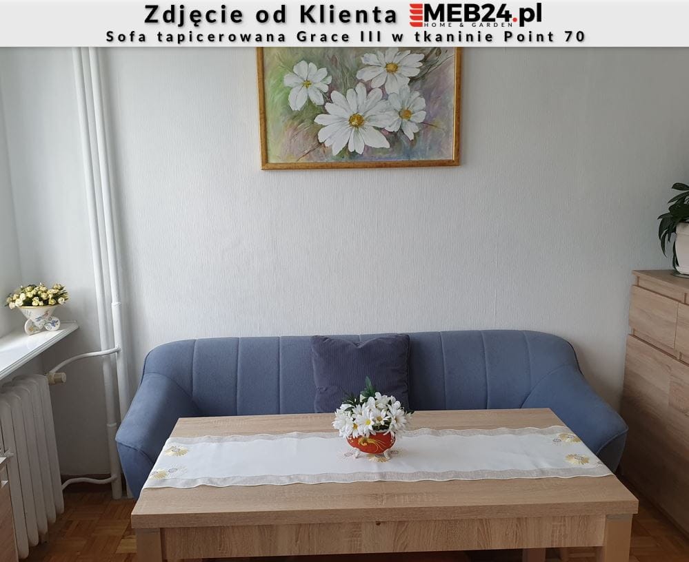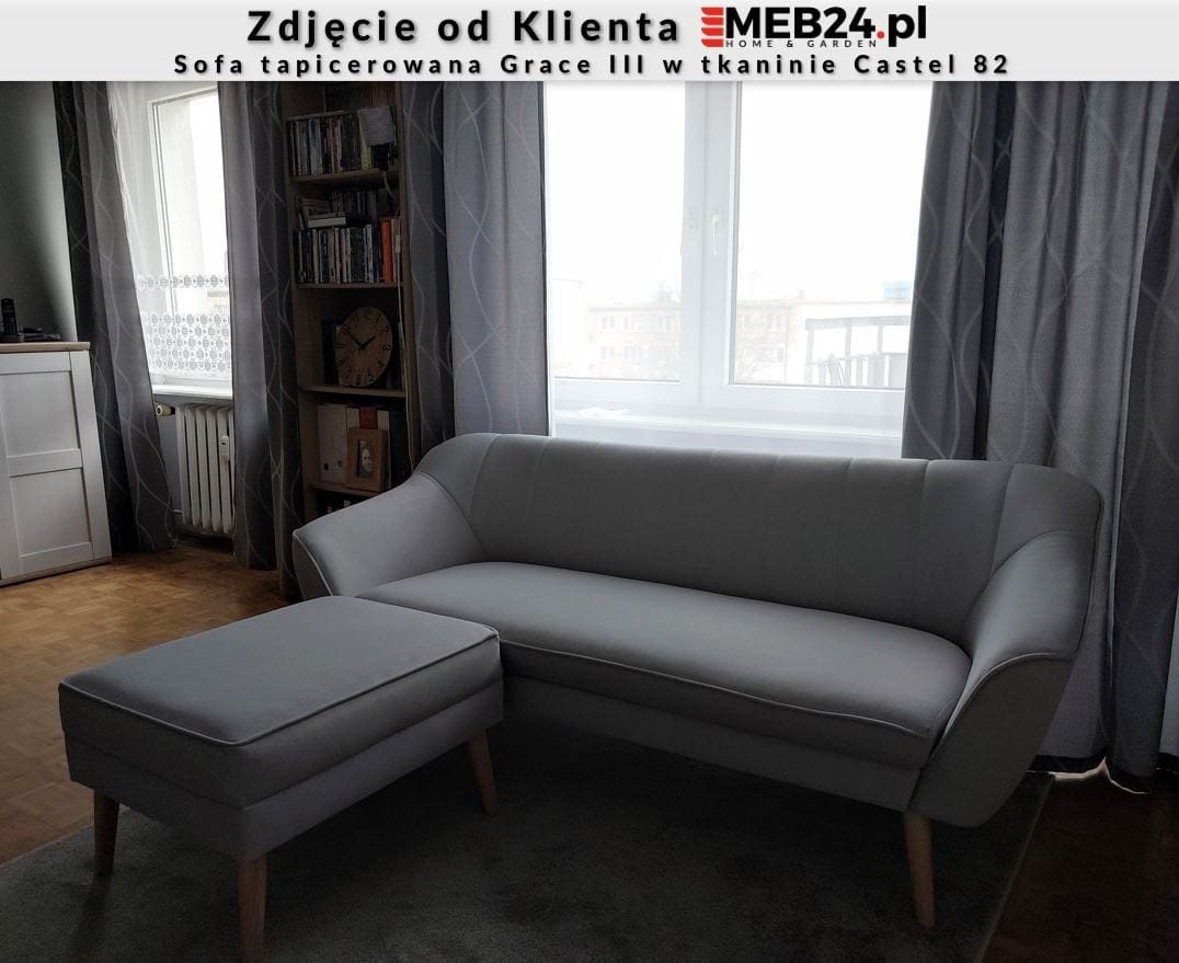Sofa Grace III to stylowa i komfortowa propozycja trzyosobowej sofy do salonu utrzymanego w skandynawskim stylu. Sofa wykonana została z najlepszych materiałów i dzięki dużej ilości tkanin do wyboru pozwala dopasować ją kolorystycznie do każdego wnętrza. Subtelne aczkolwiek stabilne 21 centymetrowe nóżki (różne kolory do wyboru) w połączeniu z stylową tapicerką z klasycznymi przeszyciami idealnie dopełniają kompozycję tego mebla. Różne typy przyjemnych w dotyku tkanin zadowolą nawet najbardziej wybredne gusta a ich plamoodporność pomoże w zachowaniu czystości i higieny użytkowania sofy przez lata. Sofa Grace III zaprojektowana i wykonana została w Polsce co jest gwarancją jakości - Wspieraj