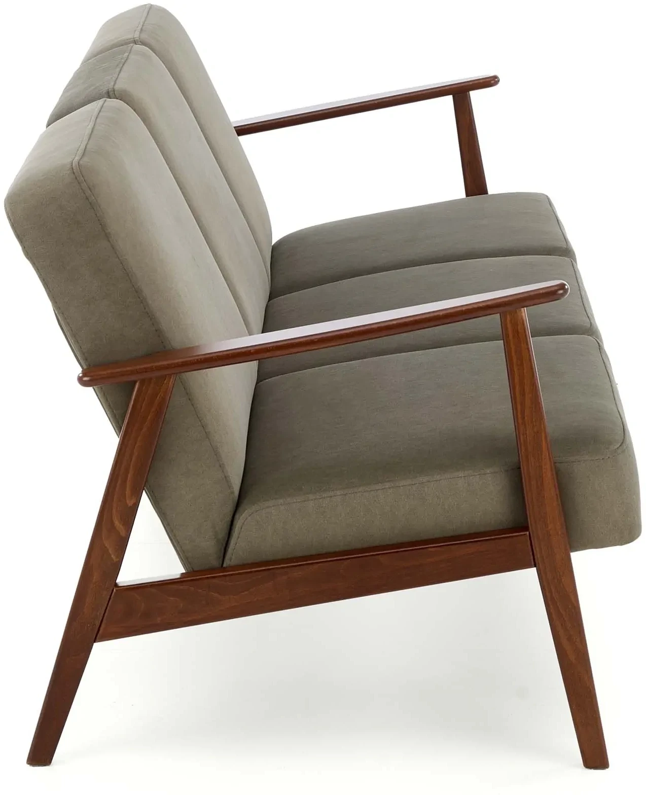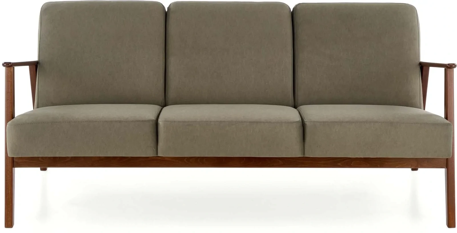 Sofa tapicerowana Milano trzyosobowa drewniany stelaż do salonu oliwkowy/ciemny orzech