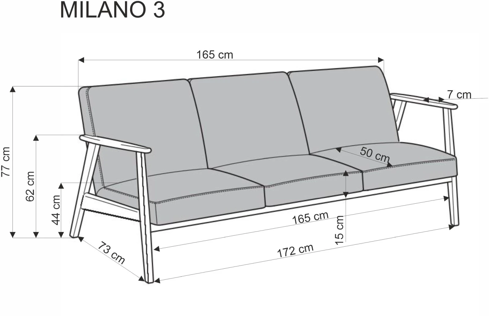 Wymiary sofy Milano: