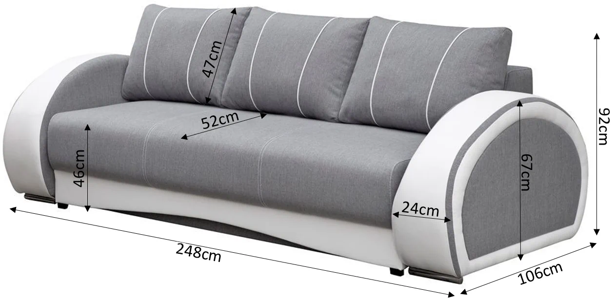 - szerokość sofy: 248 cm