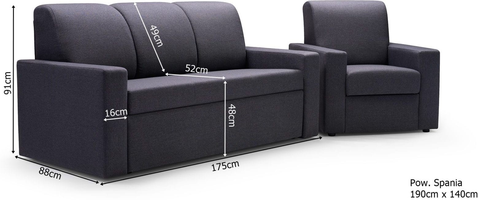 - funkcja rozkładania sofy daje powierzchnię spania 140x190cm