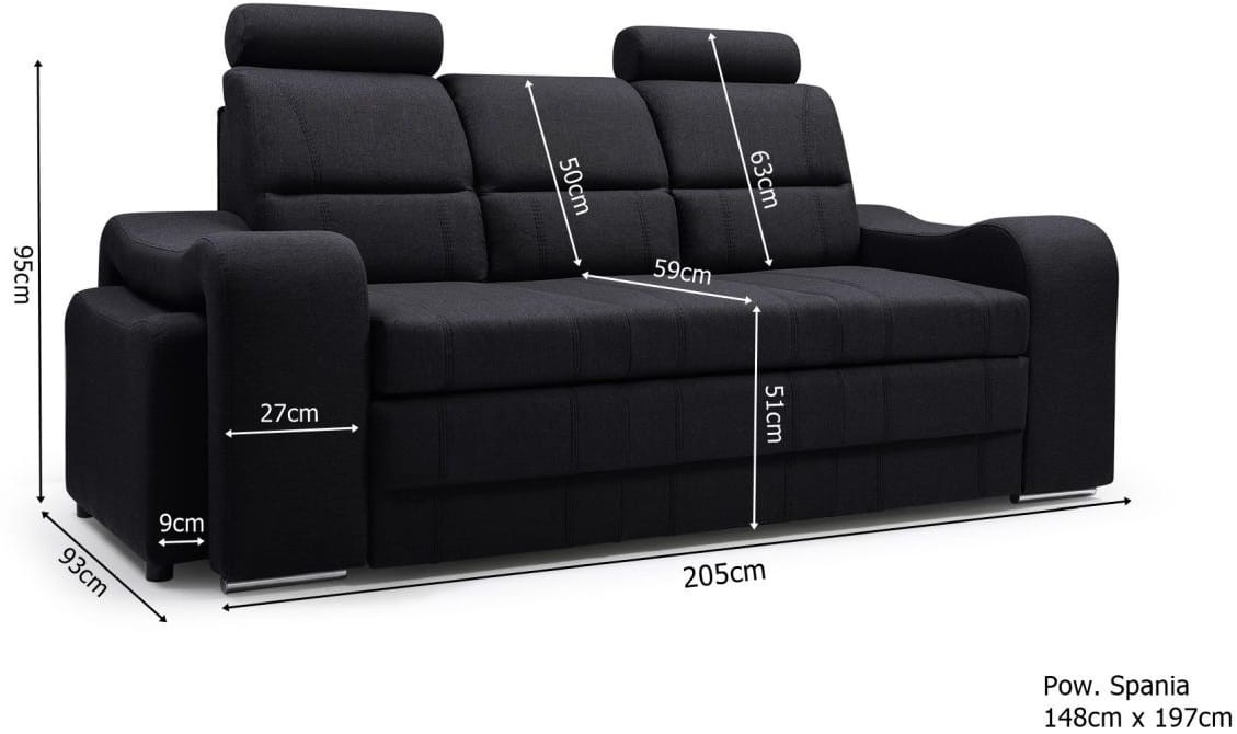 - funkcja rozkładania sofy daje powierzchnię spania 148x197cm