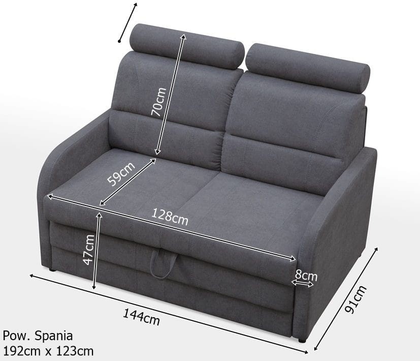- funkcja rozkładania sofy daje powierzchnię spania 123x192cm