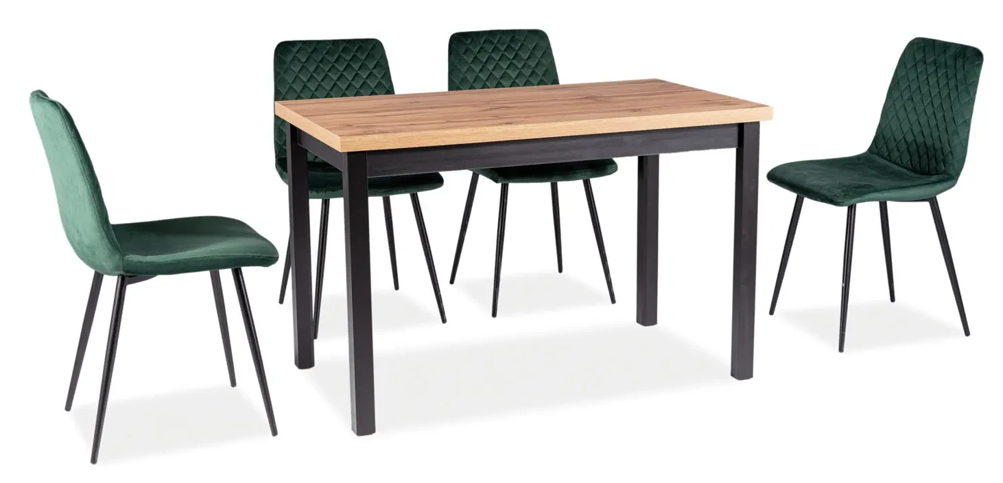Stół Adam to nietuzinkowa propozycja mebla do wnętrz zarówno nowoczesnych, jak i klasycznych. Stół jest centralnym elementem każdej jadalni, dlatego należy zwrócić uwagę na jego interesujący i przyciągający wzrok wygląd. Model Adam łączy w sobie piękny design i funkcjonalność. Blat stołu o wymiarach 100x60 cm wykonany z wysokiej jakości płyty wiórowej laminowanej w kolorze dąb artisan i umieszczony na czterech smukłych, czarnych nóżkach wykonanych z płyty MDF. Całość tworzy przyciągającą wzrok formę nadającą charakteru każdemu pomieszczeniu.