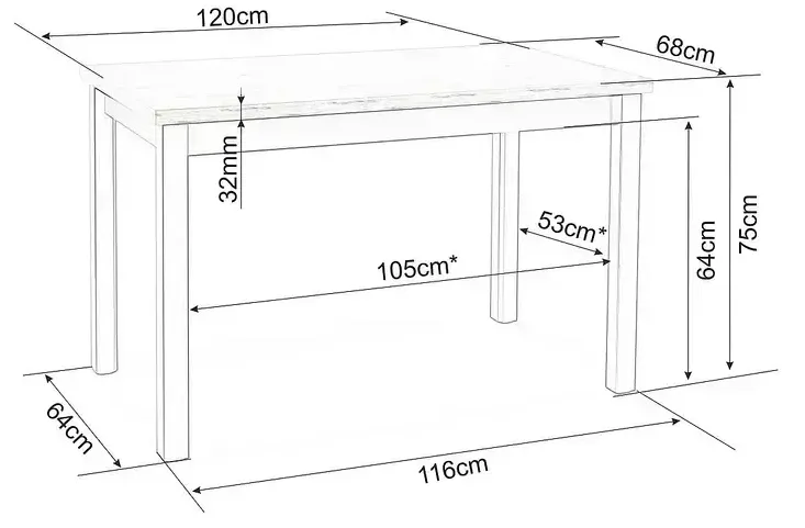 Blat z płyty laminowanej zapewnia odporność na zarysowania, wysoką trwałość oraz łatwość w utrzymaniu czystości. Stabilny stelaż z MDF gwarantuje solidność i długowieczność konstrukcji. Nierozkładana forma stołu sprawia, że mebel zachowuje lekką, zwartą sylwetkę, a jego proporcje są idealne do wygodnego użytkowania nawet przez sześć osób.