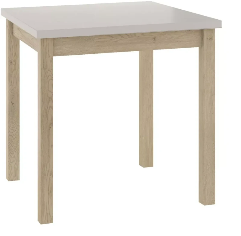Blat wykonano z odpornej na zarysowania płyty laminowanej, co zapewnia nie tylko trwałość, ale również łatwość w czyszczeniu. Stabilny stelaż z MDF gwarantuje solidność i komfort użytkowania. Dzięki kompaktowym wymiarom stół pomieści wygodnie do czterech osób, a jego nierozkładana konstrukcja pozwala na zachowanie spójnej, lekkiej formy – idealnej do kuchni, jadalni lub aneksu.