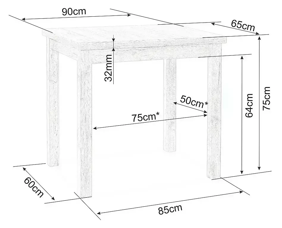 Wymiary stołu Adam: