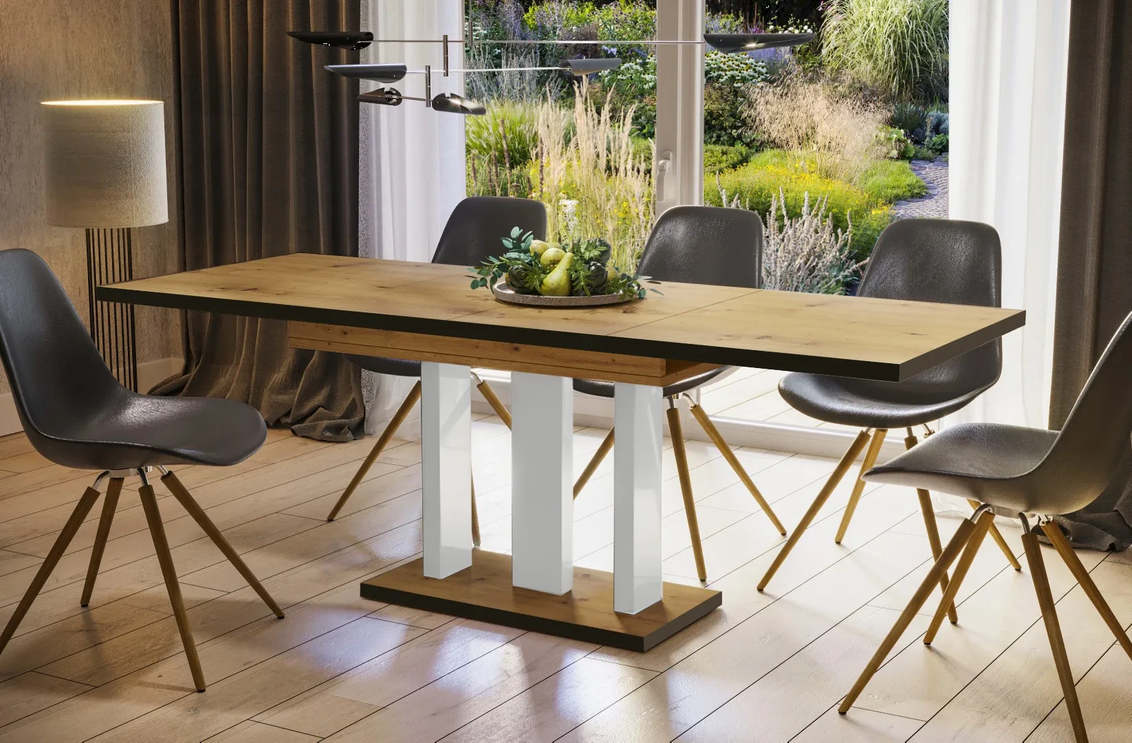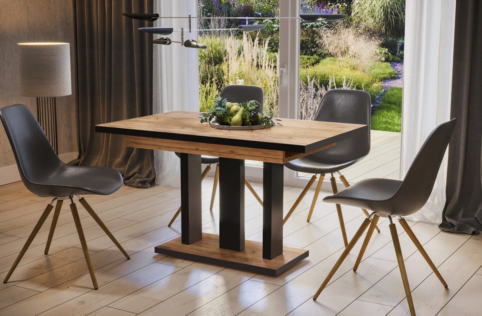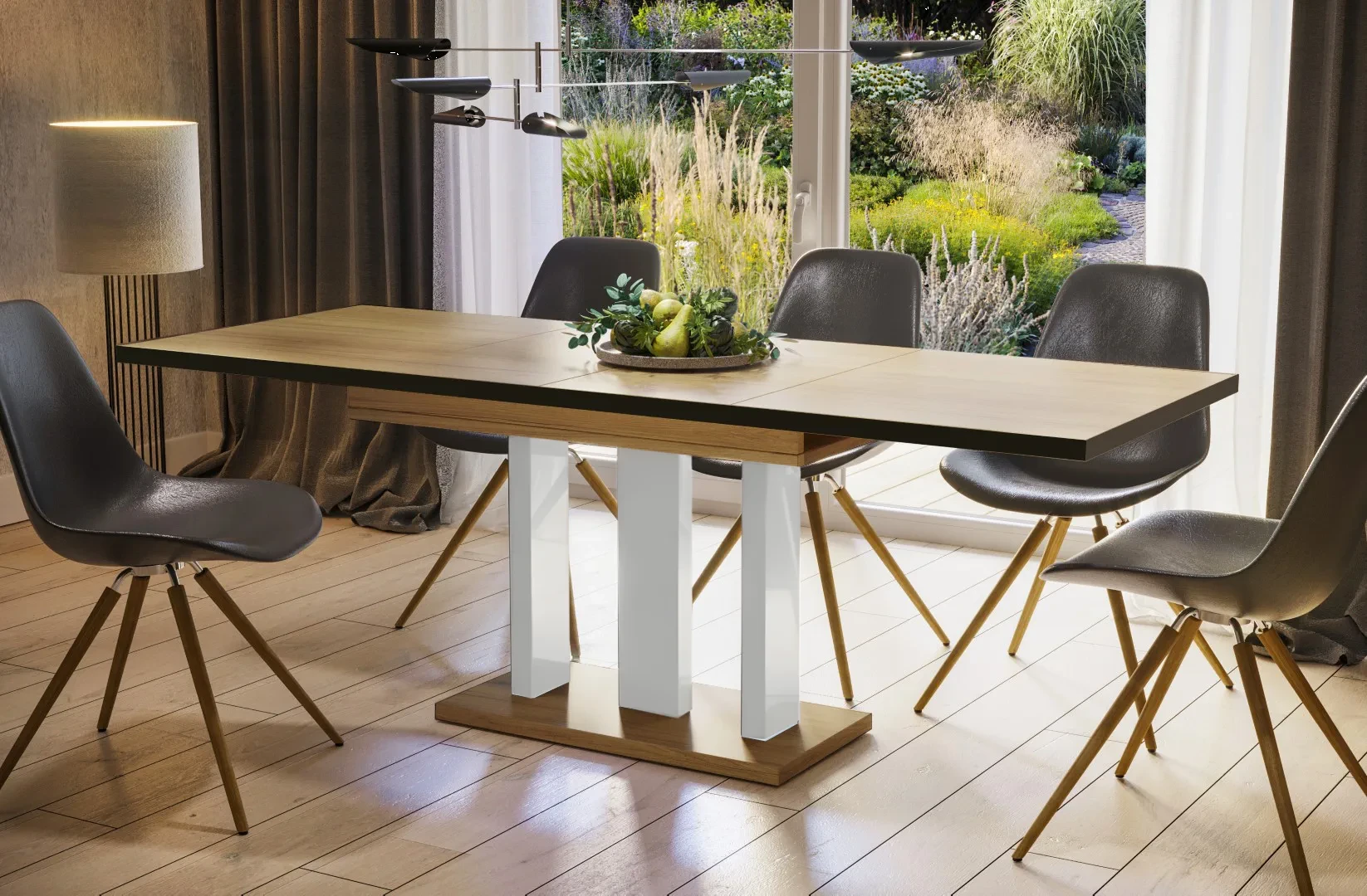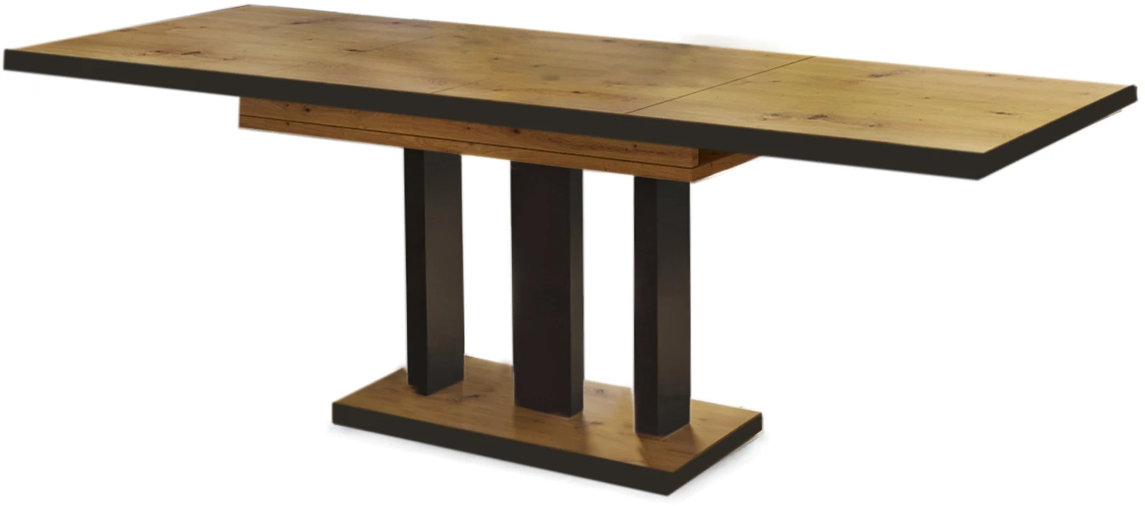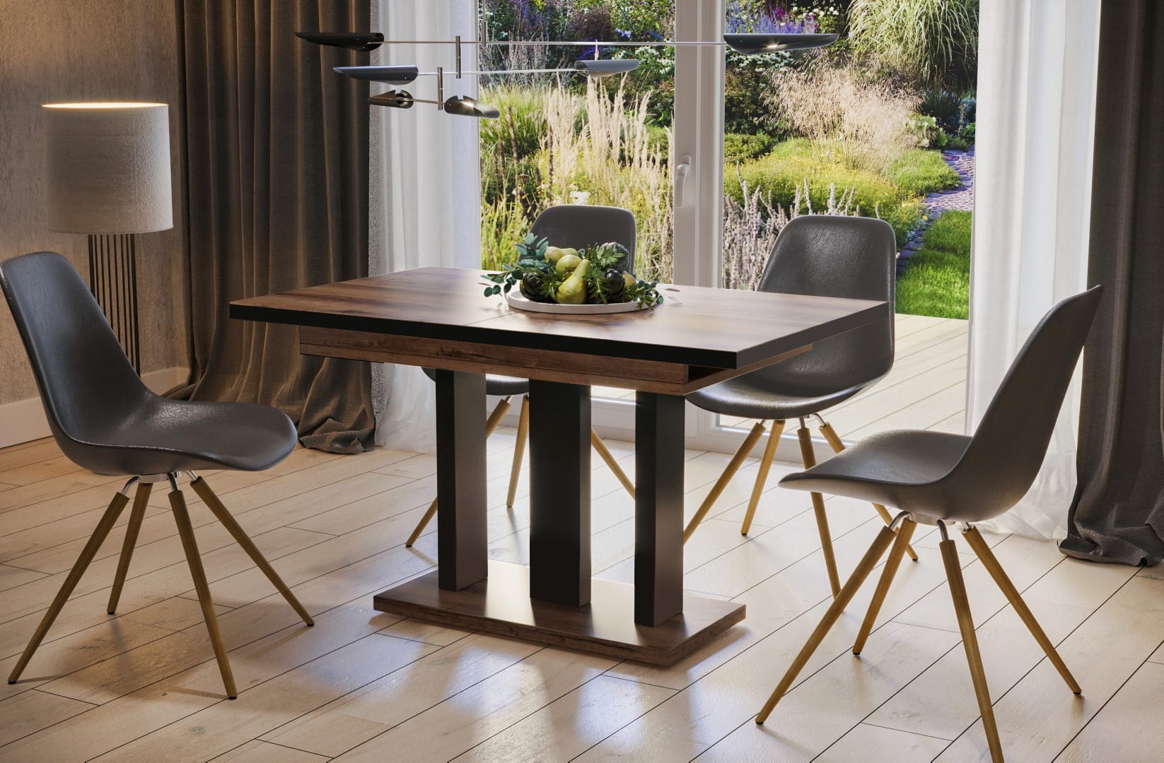 Stół Appia Black to stylowa i oryginalna propozycja nowoczesnego, rozkładanego stołu do jadalni lub pokoju dziennego. Dzięki opcji rozsuwania, stół można łatwo złożyć i rozłożyć przygotowując go do przyjęcia większej liczby gości. Zastosowanie dwóch wkładek umożliwia wydłużenie stołu do 210 cm pozwalając zmieścić wygodnie 8 osób. Stół wykonany został z wysokiej jakości płyt o wyczuwalnej strukturze, w różnych kolorach idealnie odwzorowujących np. naturalne drewno. Stół rozkładany Appia Black zaprojektowany i wykonany został w Polsce co jest gwarancją jakości - Wspieraj