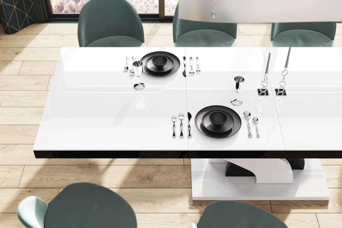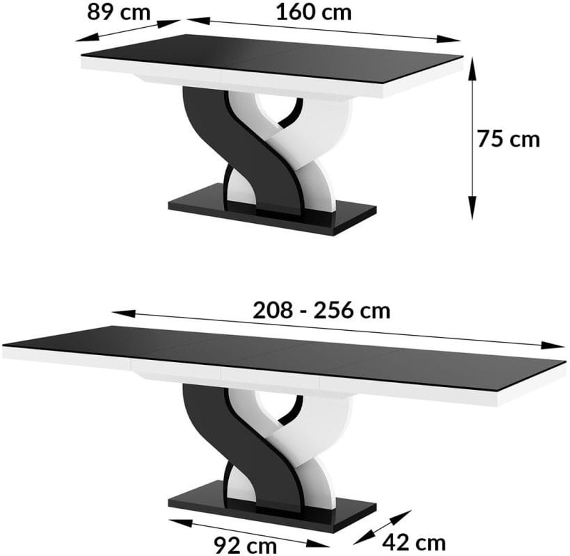 Stół rozkładany BELLA 160-256 Biało-czarny mix połysk