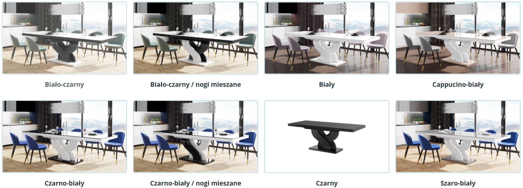 - Biało-czarny połysk (nogi mieszane)