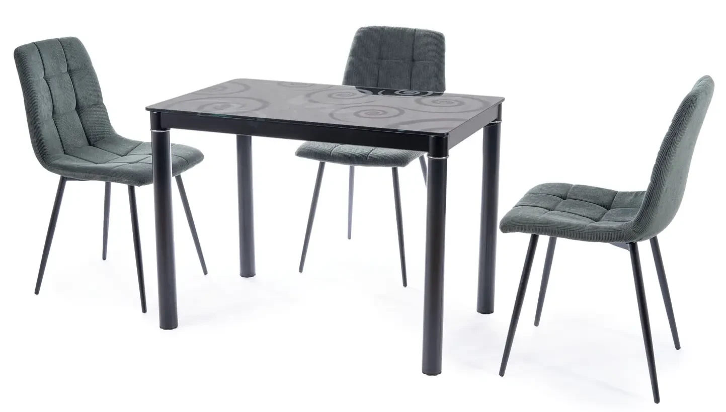 Stół Damar to propozycja tradycyjnego w designie stołu do kuchni, jadalni lub pokoju dziennego. Prosty i minimalistyczny design sprawia, że stół świetnie sprawdzi się zarówno w nowoczesnych, jak również bardziej tradycyjnych wnętrzach. Mebel charakteryzuje się niewielkimi gabarytami, które pozwolą zagospodarować nawet ograniczoną przestrzeń. Blat stołu wykonany został z wysokiej jakości, odpornego na uszkodzenia mechaniczne szkła hartowanego, a stelaż ze stali malowanej na kremowy kolor. Dodatkowo powierzchnia blatu ozdobiona została przyciągającymi wzrok wzorami, które wyróżniają stół na tle innych mebli.