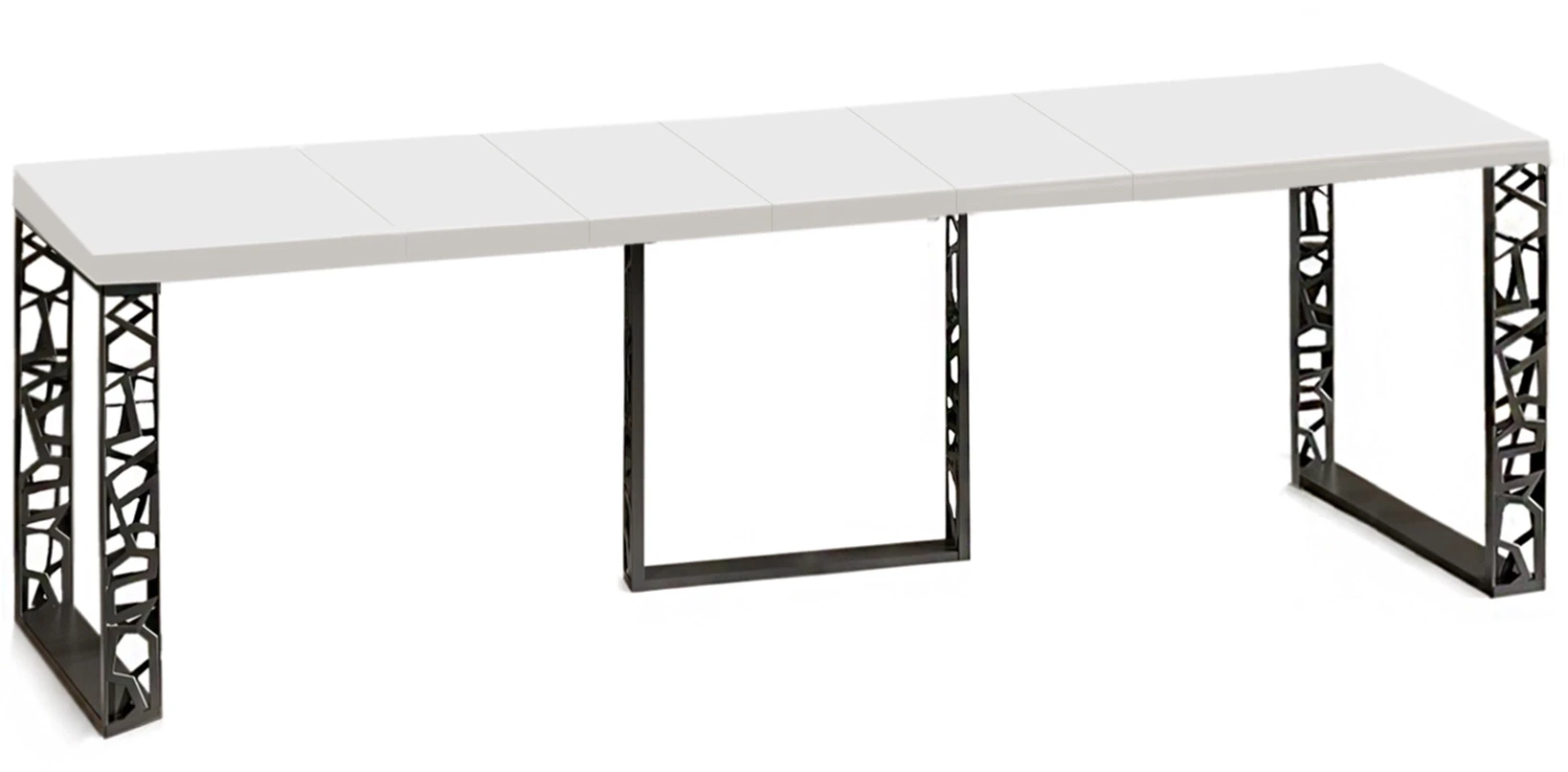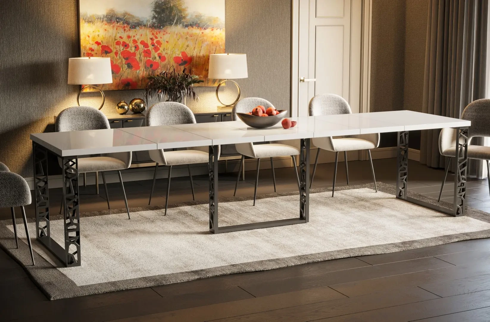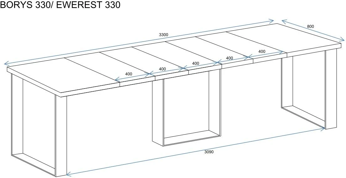 Stół Ewerest to stylowa i oryginalna propozycja nowoczesnego, rozkładanego stołu do jadalni lub pokoju dziennego. Stół można łatwo złożyć i rozłożyć przygotowując go do przyjęcia większej liczby gości. Zastosowanie pięciu wkładek umożliwia wydłużenie stołu aż do 330 cm pozwalając zmieścić wygodnie 12 osób. Stół wykonany został z wysokiej jakości płyt w kolorze białego połysku. Niewątpliwym atutem modelu Ewerest są trzy stabilne, przyciągające wzrok nogi w czarnej kolorystce. Stół rozkładany Ewerest zaprojektowany i wykonany został w Polsce co jest gwarancją jakości - Wspieraj