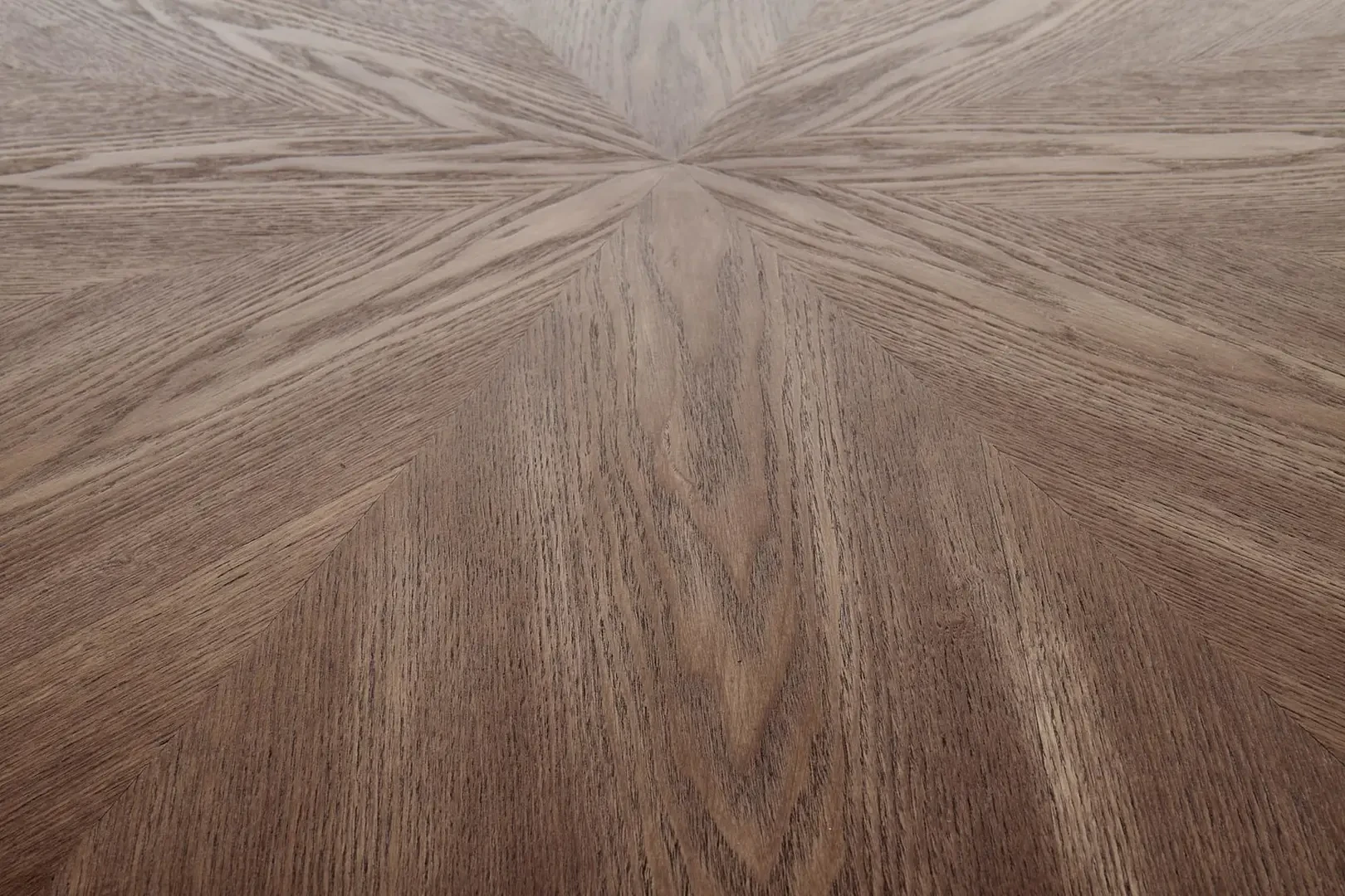 okrągły blat z naturalną okleiną w kolorze orzechowym