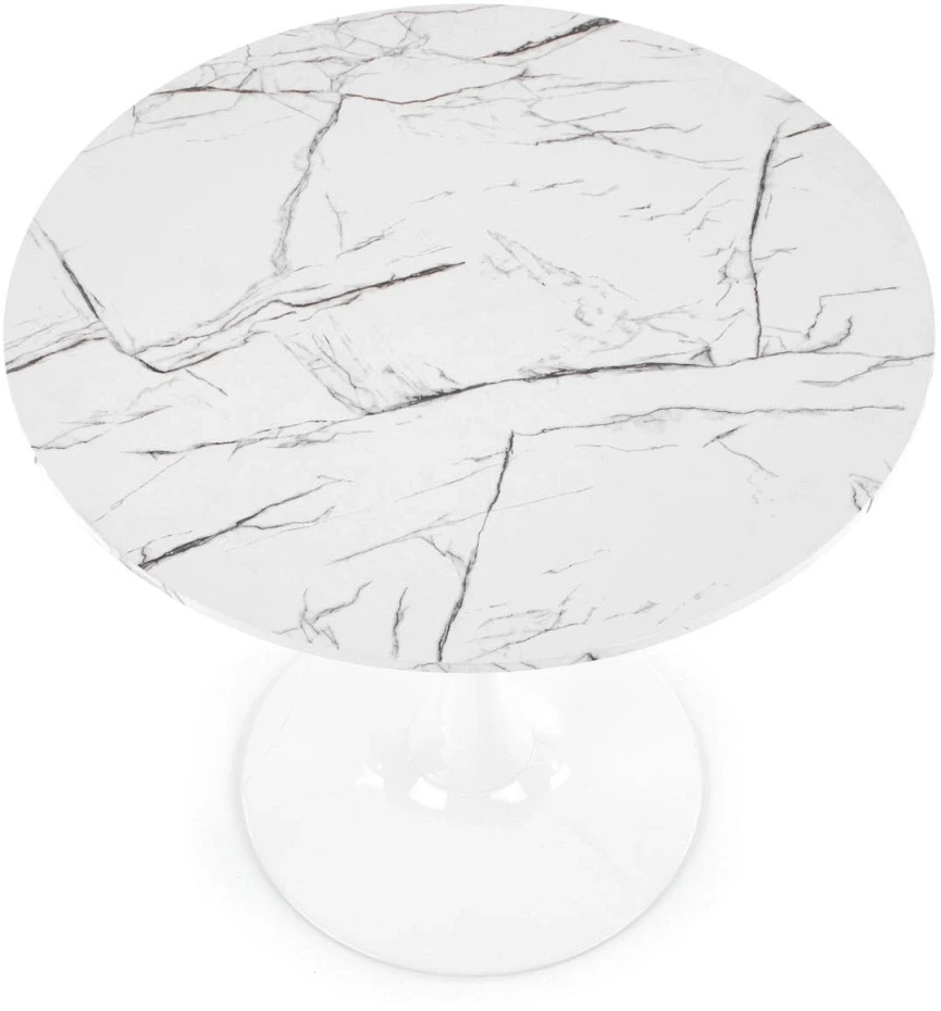 Stół okrągły Denver na jednej nodze do jadalni 80 cm biały marmur
