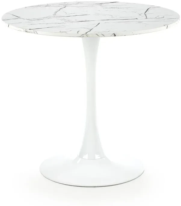 Szukasz stołu, który zachwyca wyglądem, ale jednocześnie idealnie sprawdzi się na co dzień? Stół DENVER to odpowiedź na potrzeby nowoczesnych wnętrz – zarówno tych utrzymanych w duchu glamour, jak i minimalistycznych przestrzeni. Jego kompaktowy wymiar sprawia, że doskonale sprawdzi się w mniejszych jadalniach, kuchniach lub kawalerkach. Blat w dekorze białego marmuru to prawdziwa ozdoba, która przyciąga wzrok i wprowadza nutę luksusu do każdej aranżacji. Stabilna noga w formie tulipana malowana na biało nie tylko pięknie się prezentuje, ale również zapewnia maksymalny komfort użytkowania – bez przeszkadzających nóg na rogach. Solidne wykonanie i wysokiej jakości materiały gwarantują, że stół będzie służył przez lata.