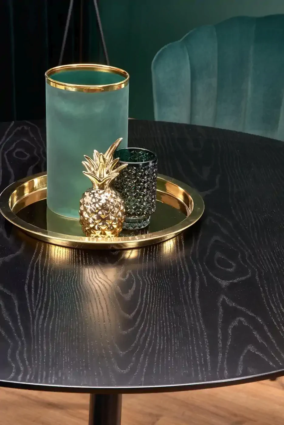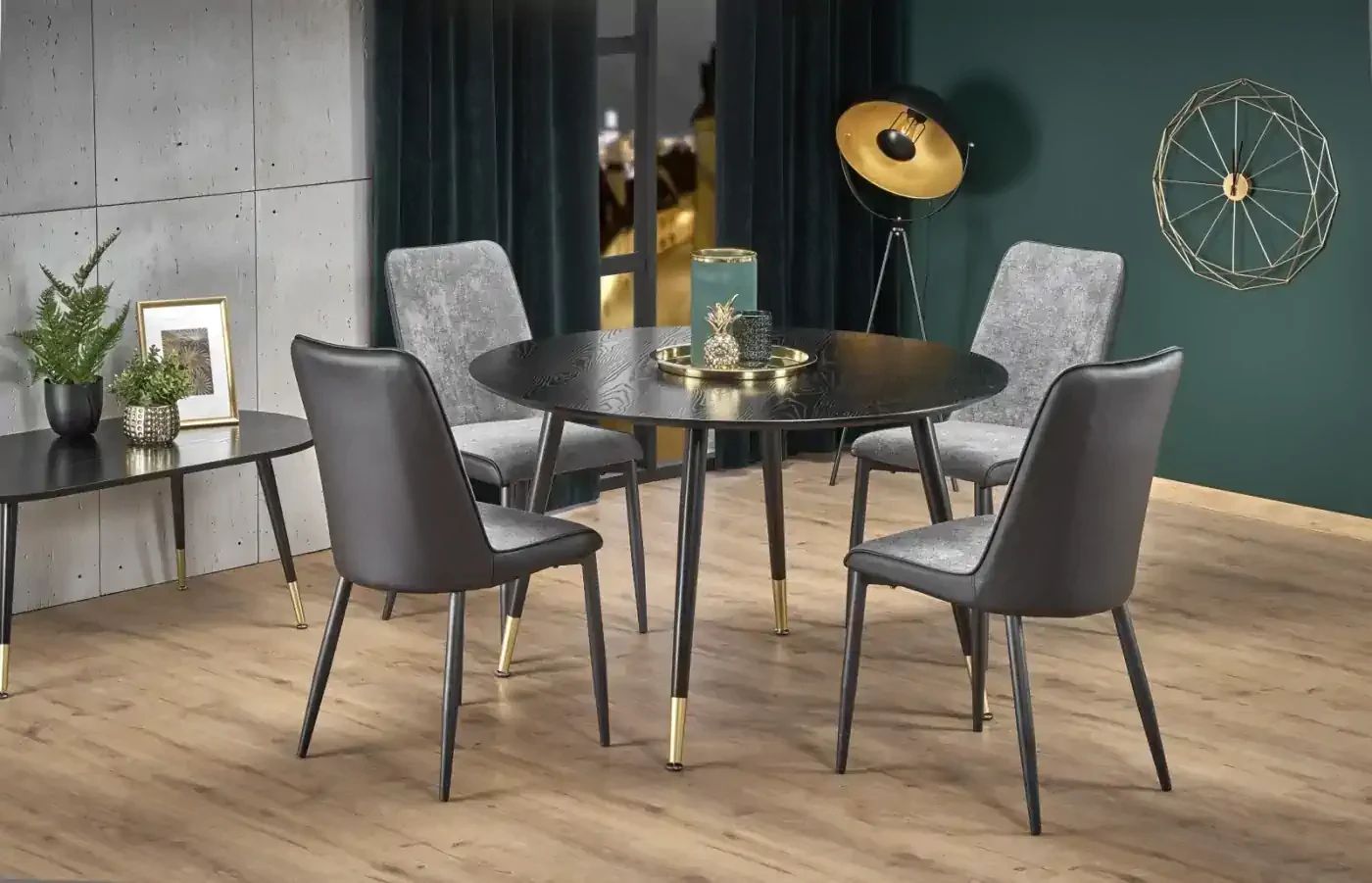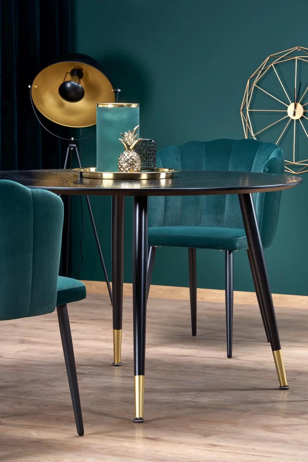Stół okrągły Embos 120cm do jadalni blat czarny/złoty