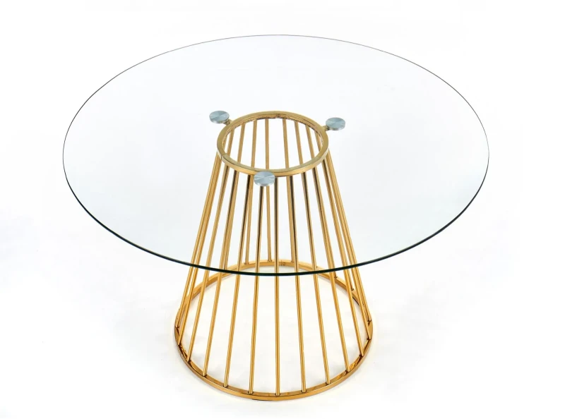 Stół okrągły Liverpool 120cm do jadalni blat szkło bezbarwny/złoty